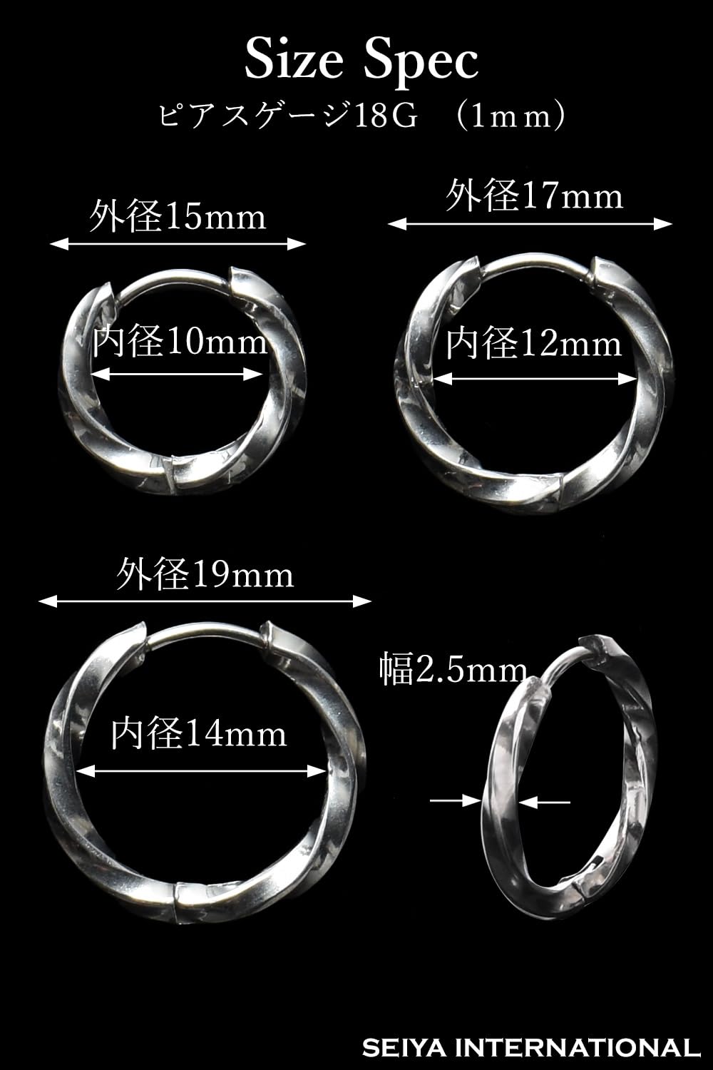 【新着特価】[SEIYA INTERNATIONAL] ピアス メンズ フープピアス リングピアス ツイスト ステンレス 18G 両耳 2個セット