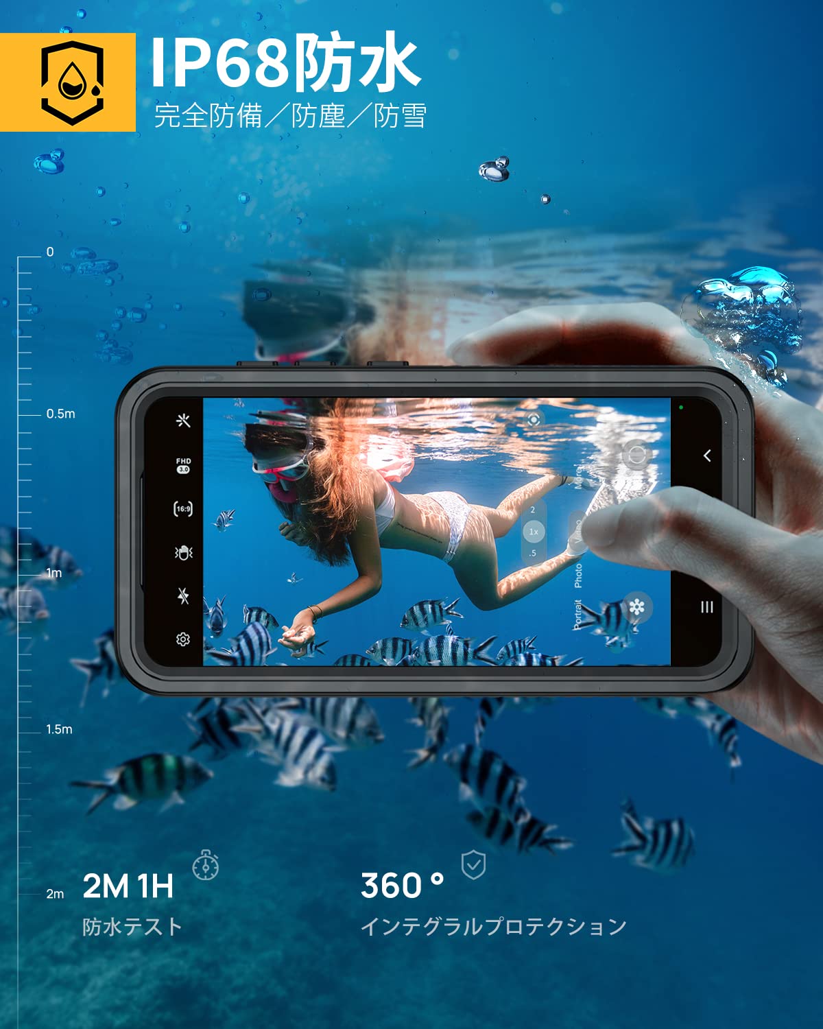 【在庫のみ】Lanhiem Galaxy A54 5G 防水ケース SC-53D SCG21カバー 完全防水 IP68米軍規格 指紋認証 タッチ可 耐衝撃 滑り止め 防塵 防雪 水中撮影 ワイヤレス充電サポート超軽量 薄型 透明 付け外し簡単 全面保護カバー ブラック