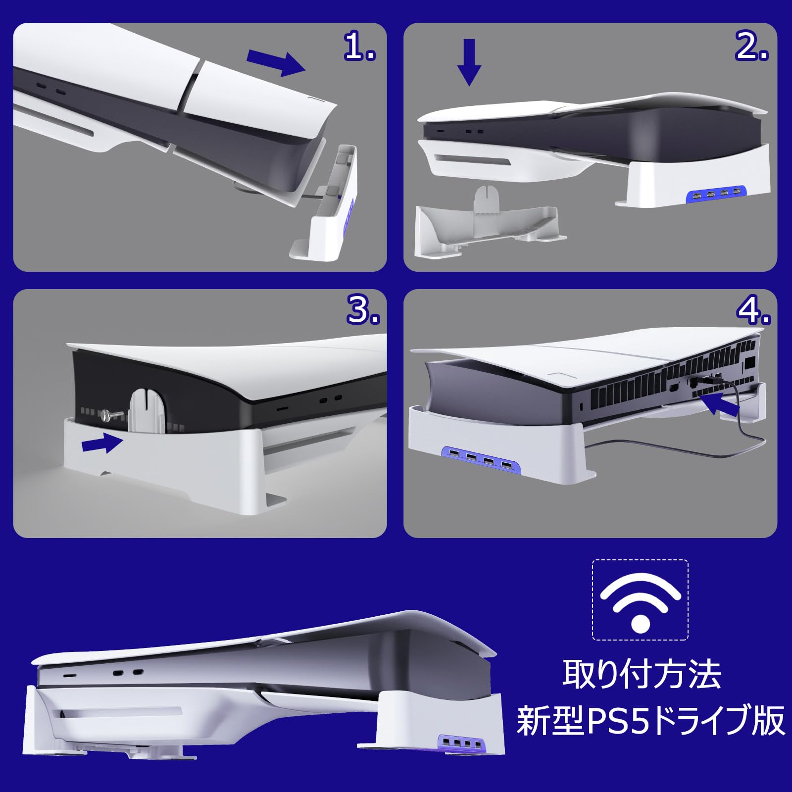 【4つのUSBポート付き】:ps5 pro用/新型 ps5 Slim用スタンドを使用して、コンソールのUSBポートを1つから4つに拡張しして(、幅広い互換性を実現します。コントローラー、マウス、キーボード、USBケーブル、ハードドライブなどの周辺機器を同時に使用できます。