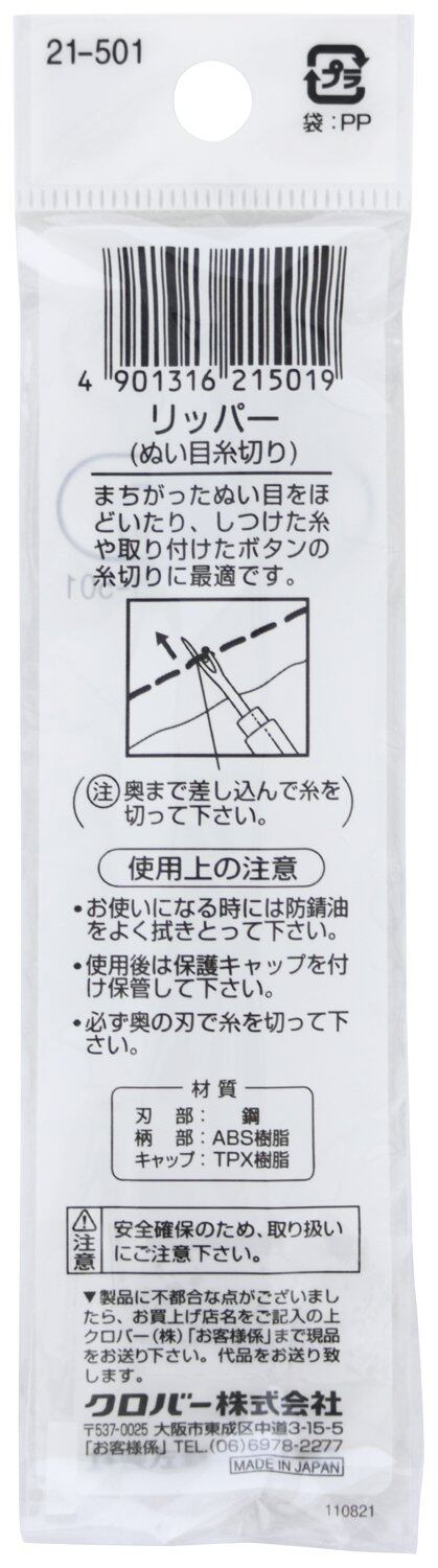 はさみでは切りにくいボタンの糸切り、縫い目、しつけ糸の糸切りに使用できます。