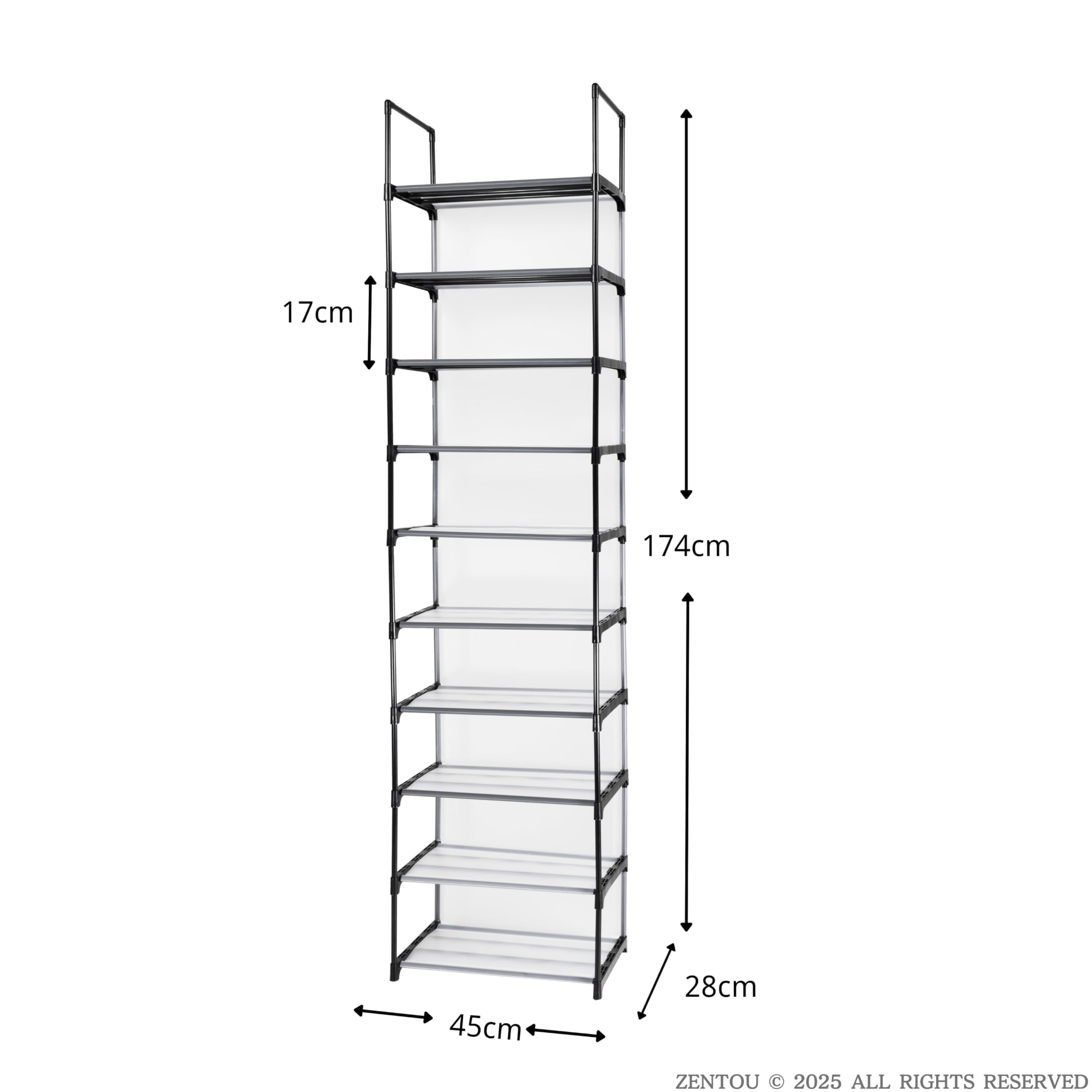 10段 ブラック 【新型壁&靴保護機能】 シューズラック スリム 玄関収納 大容量20~24足 靴箱 下駄箱 狭い玄関対応 省スペース 半透明PPシート付き 壁面保護 防汚 防水 組立簡単 手袋付き 幅45×奥行28×高さ174cm