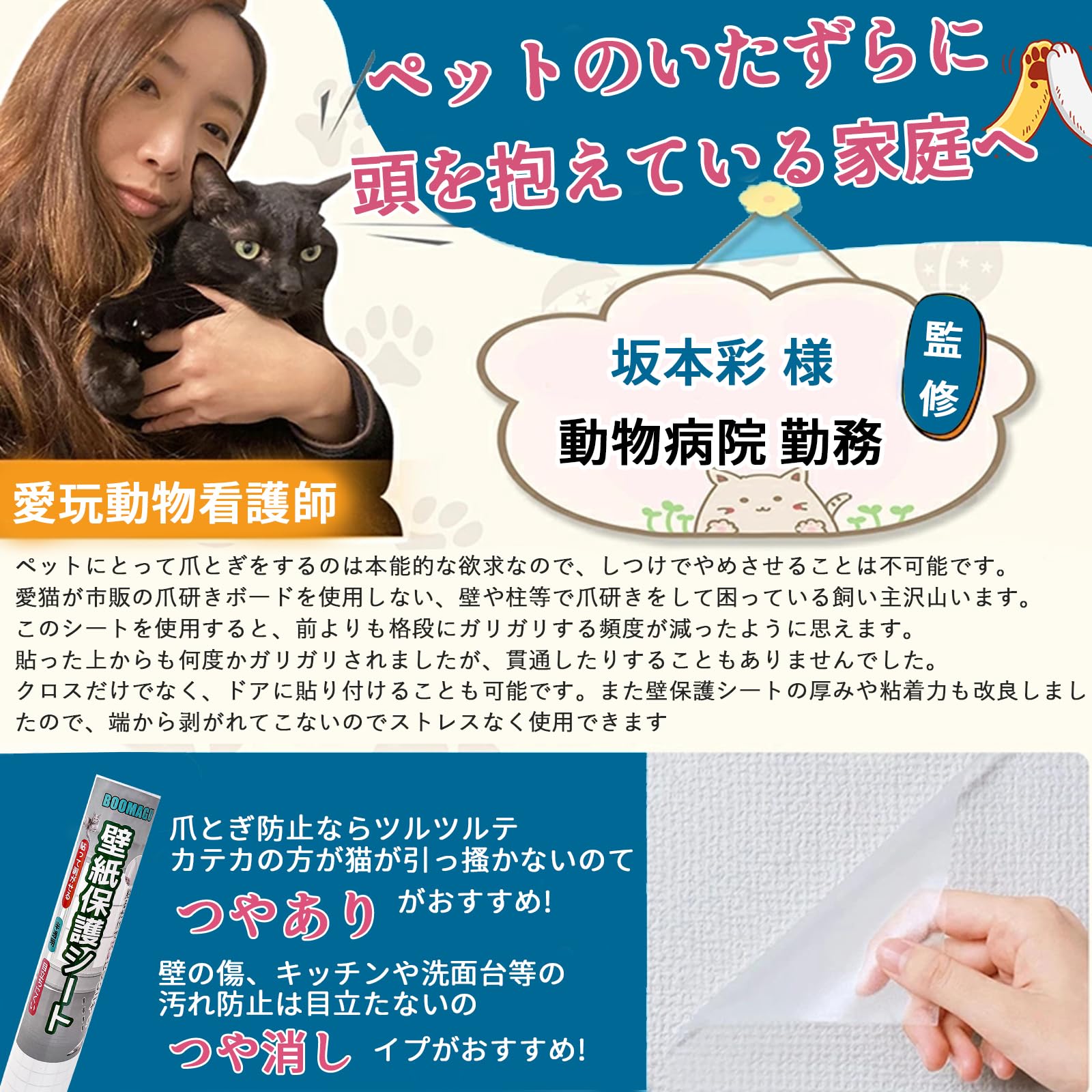 【人気】BOOMAGU【動物看護師監修】 猫 壁紙保護シートはがせる 壁紙シール 貼りやすい 爪研ぎ防止シート ひっかき 防止 半透明 目立たない壁/家具/キッチンなどの傷 汚れ防止(30CM*2.5M)