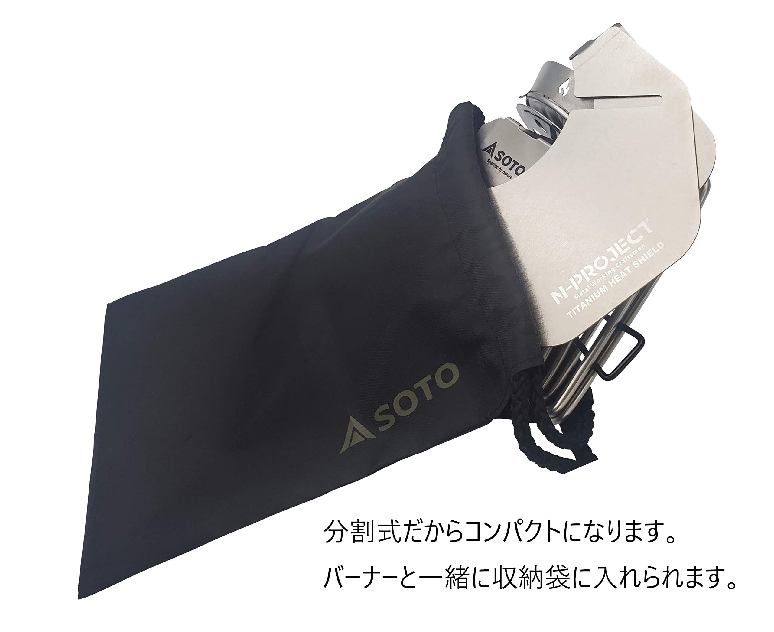 N-project チタン分割式遮熱板 SOTO ST-310・ST-340専用 TITANIUM HEAT SHIELD 日本製 ?ST-340専用 チタン遮熱板 (バーナーは別売り) ?材質:純チタン・サイズ:使用時19cm×13・重さ60g ?輻射熱によるボンベの過熱を防ぎます。 軽くて丈夫なチタン製の遮熱板!チタンは一生モノです! ?MADA IN JAPAN