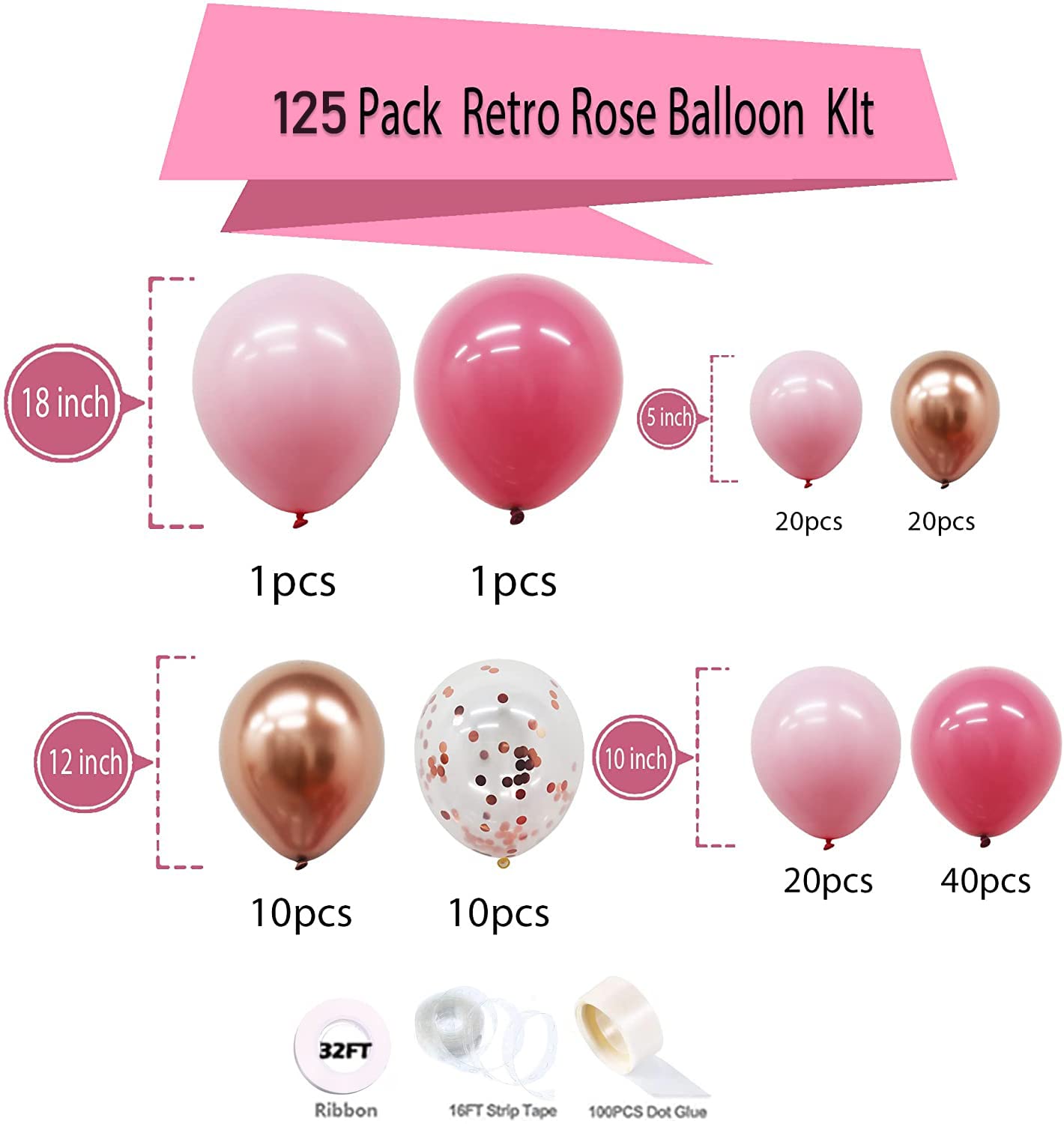 ローズピンク バルーンアーチガーランドキット 125個パック ローズピンク 紙吹雪バルーン バルーンアクセサリー付き 女の子 女性 誕生日 ウェディングパーティー センターピース 背景 エンゲージメント デコレーション用品