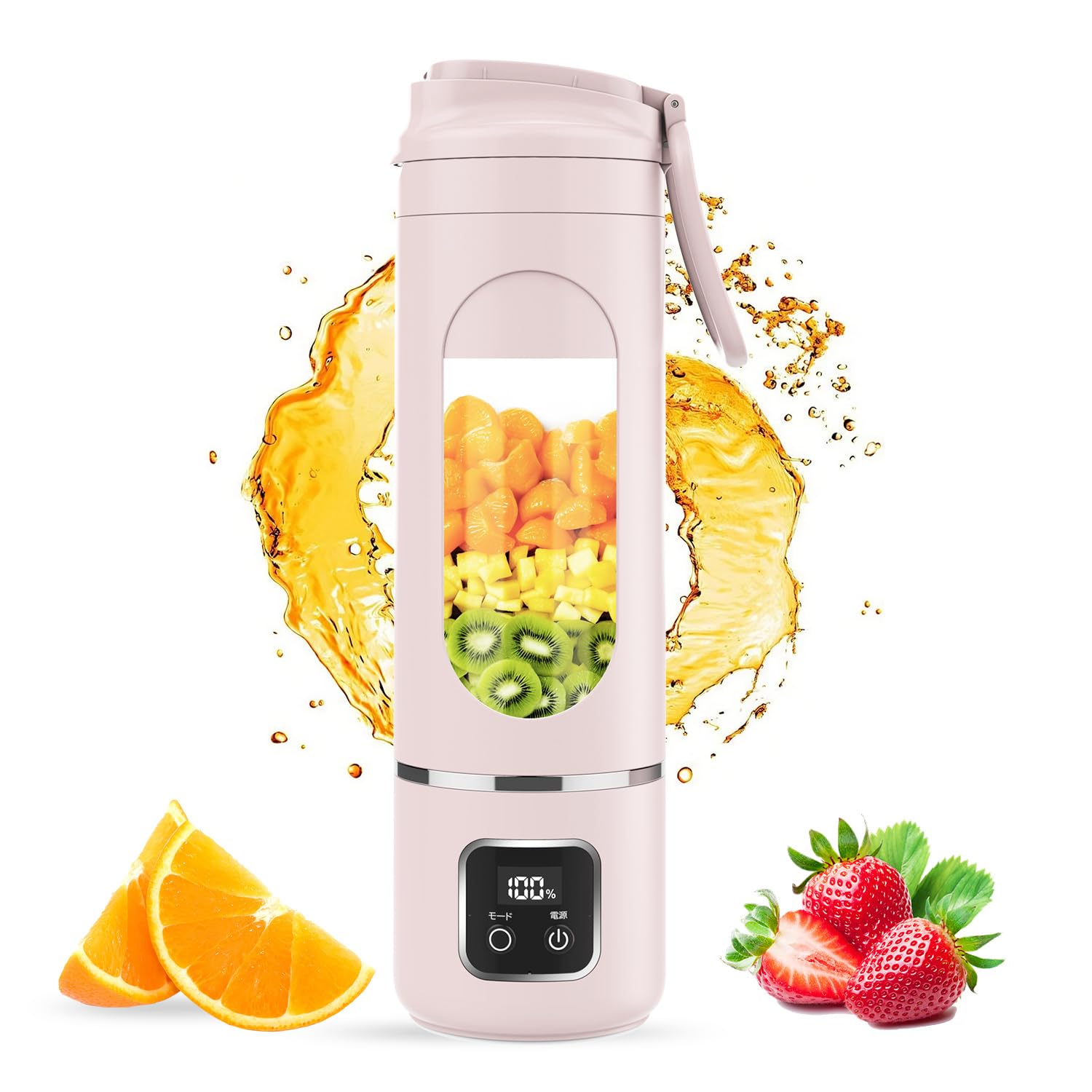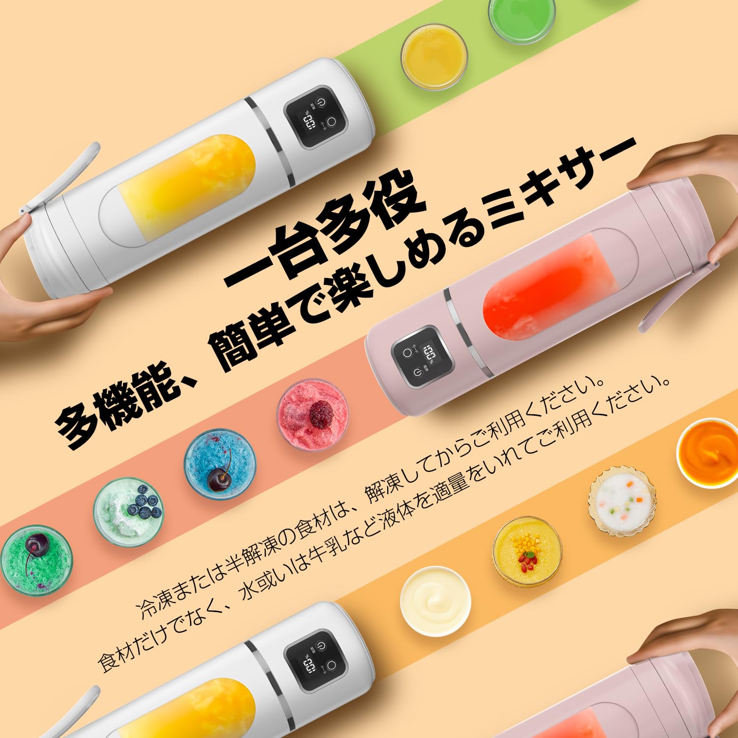ミキサー 小型 ジューサー 回転刃4枚 【携帯式 3重安全装置 30000回/分高速回転】 500mlボトル 3段階モード 食品級材料 Type-c充電式 一台多役 氷も砕ける 離乳食用 野菜 果物 ジュース お手入れ簡単 一人用 ミニ 持ち運びやすい 漏れない アウトドア キャンプ 日本語取扱説明書 (ピンク)