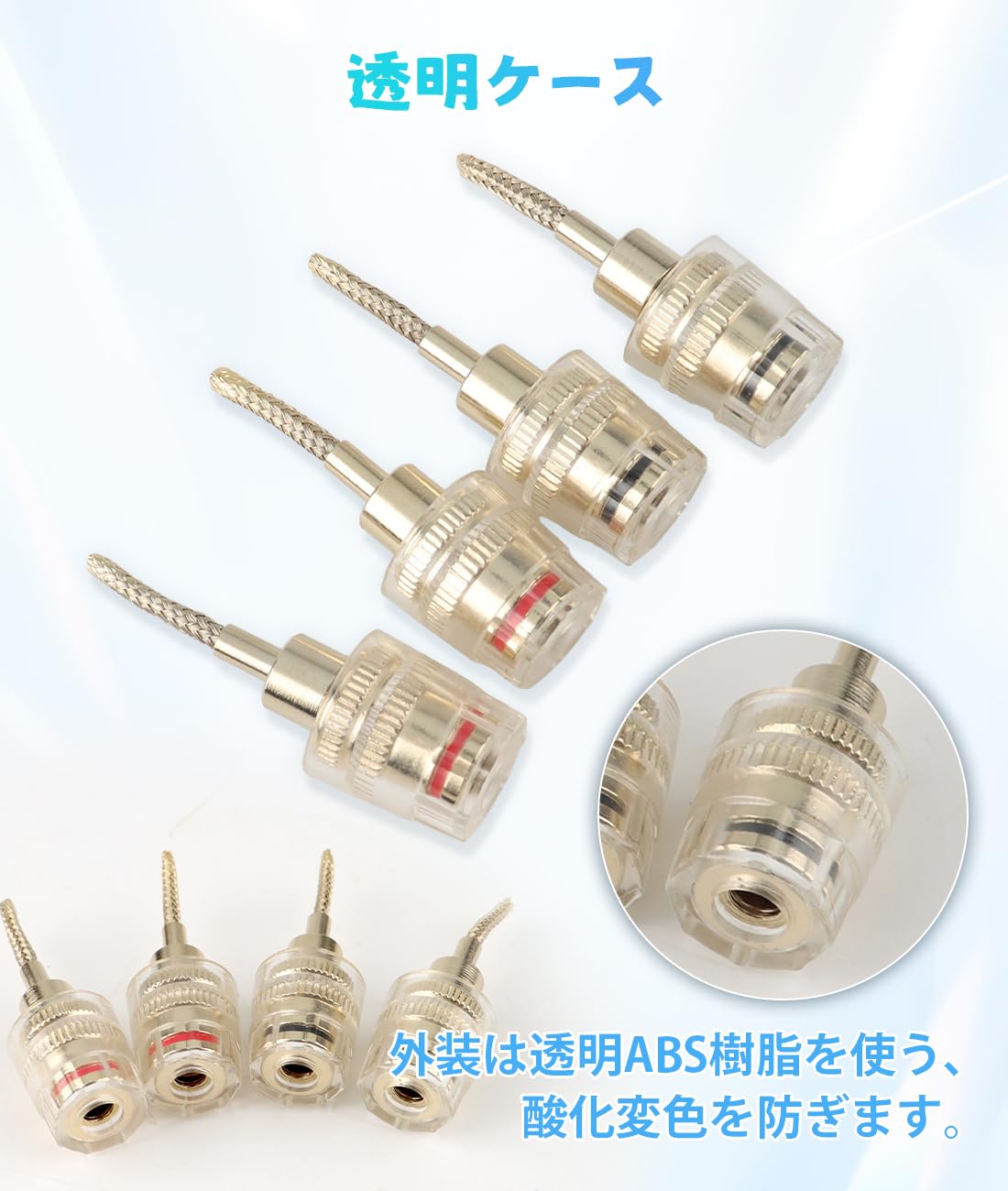 【数量限り】バナナプラグ変換コネクタ 4mm banana plugs 24K金メッキ スピーカーケーブル バナナプラグ変換針プラグ 赤黒4個セット