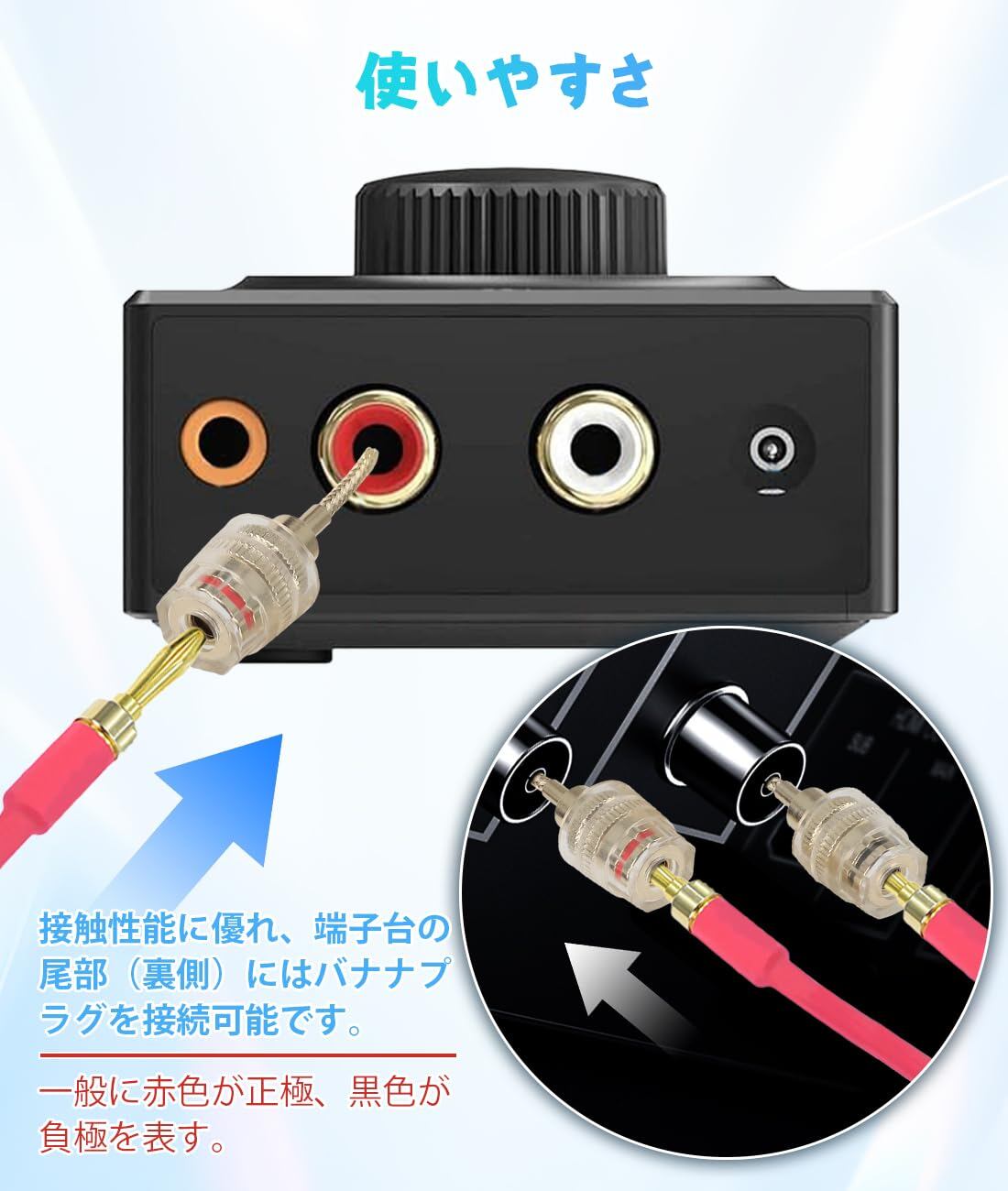 バナナプラグ変換コネクタ 4mm banana plugs 24K金メッキ スピーカーケーブル バナナプラグ変換針プラグ 赤黒4個セット