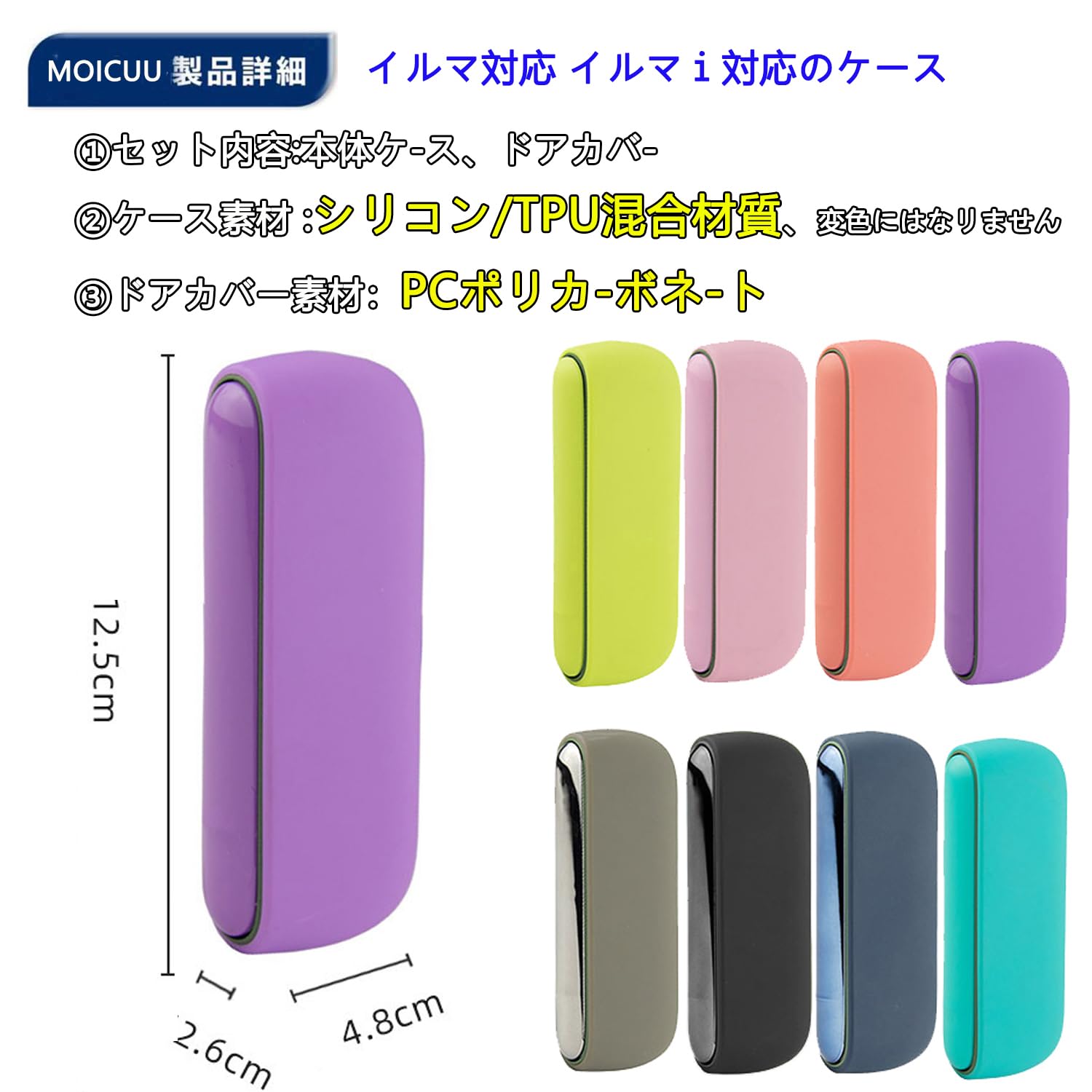 【数量限り】MOICUU交換ケース イルマ対応及びイルマi対応のケース シリコン製 対応イルマ用のカバー イルマi との互換性ありのケース 2点セット 互換用のドアカバー 側面用のケース (パープル)