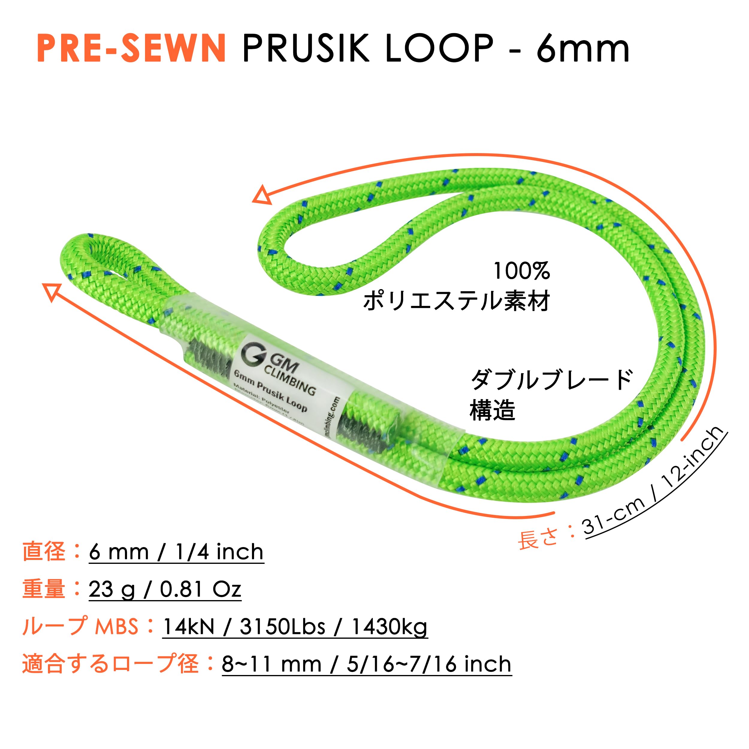 GM CLIMBING 6mm ダブルブレード プルージックループ 31cmサイズ 1本入り / 3本入り 長さは調整可能 クライミング アーボリスト