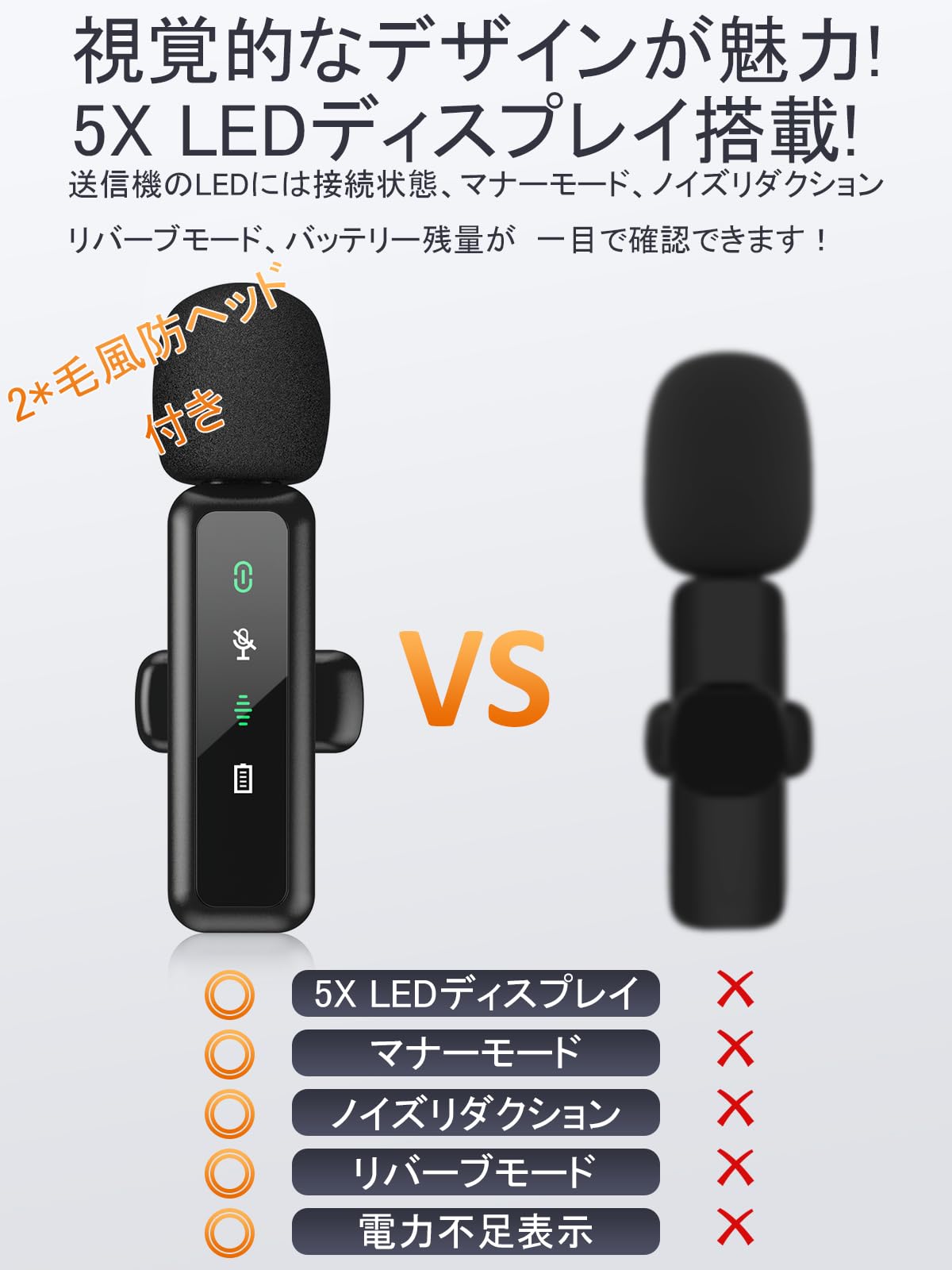 特徴 ノイズリダクション, バッテリーインジケーターライト, ミュート機能