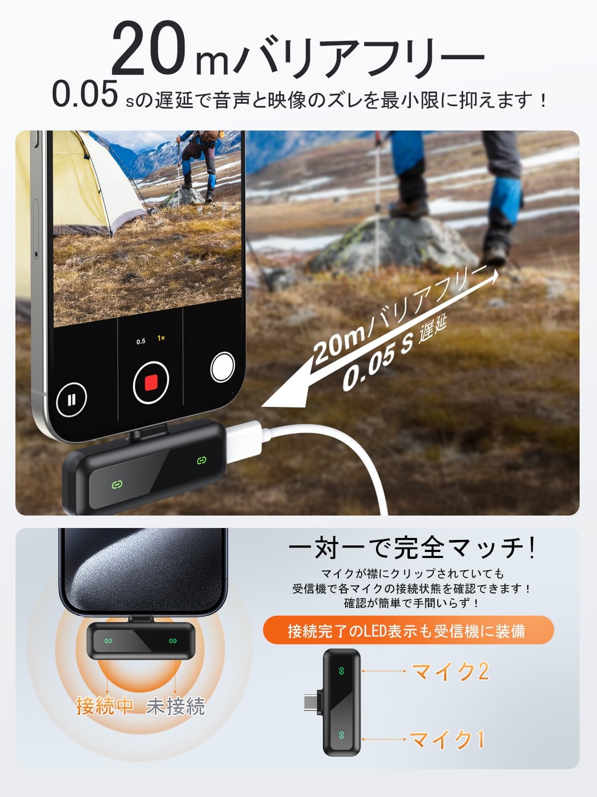 ??【大容量電池&操作簡単】配線の必要がなく!90mAhの大容量バッテリーが内蔵されており、わずか60分で完全に充電可能です。しかも、最大9時間の連続使用が可能になりました。ライブ配信やYouTube撮影、Vlogなど、長時間にわたる用途に最適なワイヤレスマイクです。受信機は電池不要で、プラグ&プレイタイプなので、デバイスに挿すだけですぐに使えて、面倒な設定は一切ありません。大容量バッテリーと簡単操作を兼ね備えた、まさに究極のワイヤレスマイクが登場しました!????プラグアンドプレイタイプなので、複雑な手間がなく、デバイスの端子に挿入すると即時使用できます。