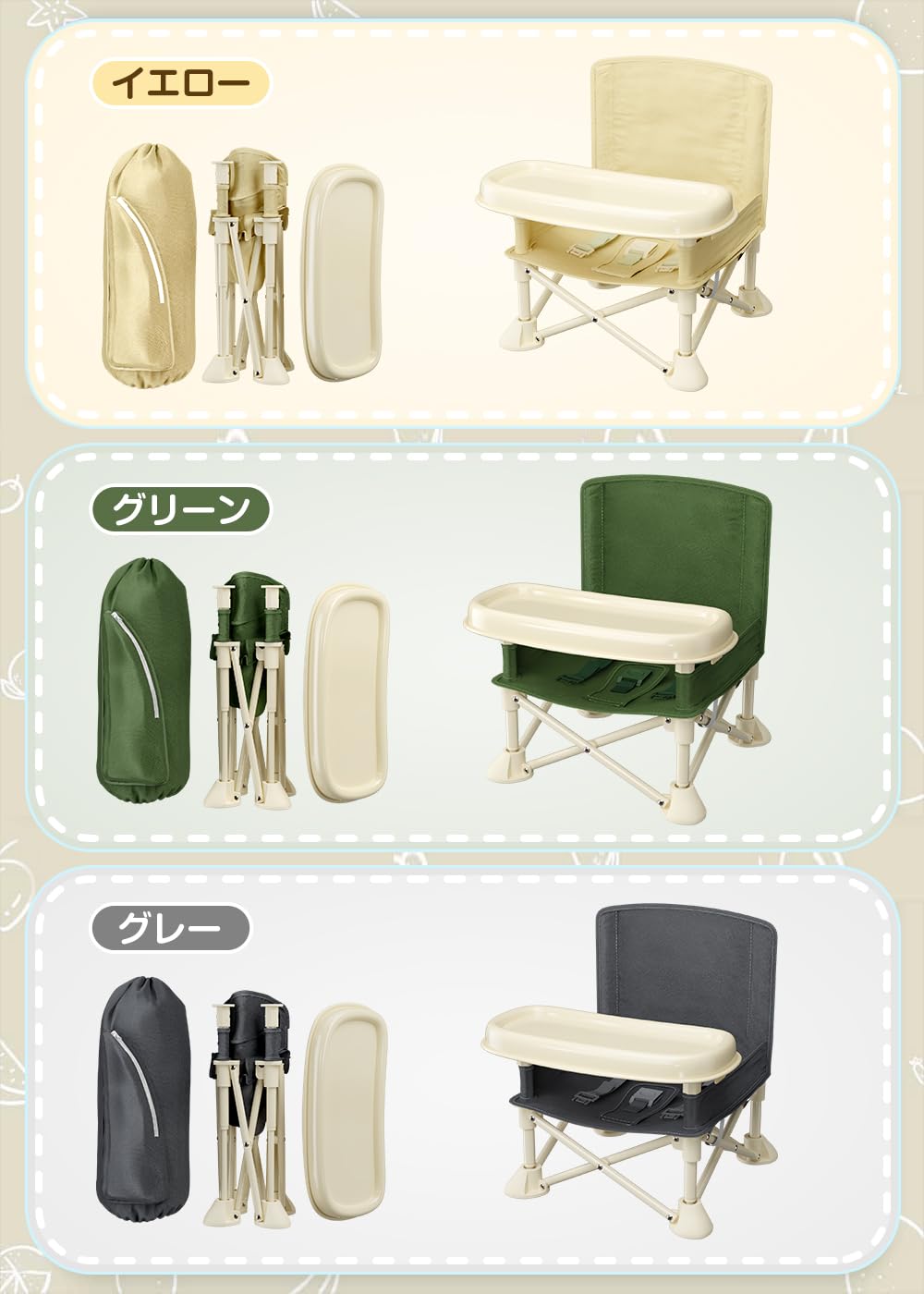 【在庫のみ】SouYuuKai ベビーチェア テーブルチェア キッズチェア 子供 赤ちゃん お食事椅子 折り畳み携帯式 軽量 幼児用 滑り止め 丈夫 安全ベルト 離乳食 屋内 屋外 収納袋付き 耐荷重15kg