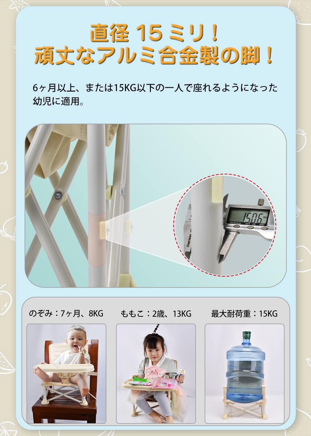 ★適用:6ヶ月以上、または15kg以下の一人で座れるようになった幼児。