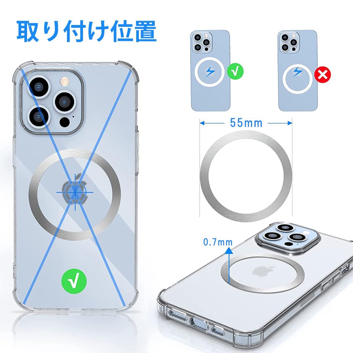 【強力な磁力】Mag-Safeシールは磁気アップ機能があり、Mag-Safe充電器とMag-Safeリングをしっかりと固定します。充電とスタンドが便利です。(ご注意:本製品は磁力アップ用のメタルリングです。本体には磁力はありません。)