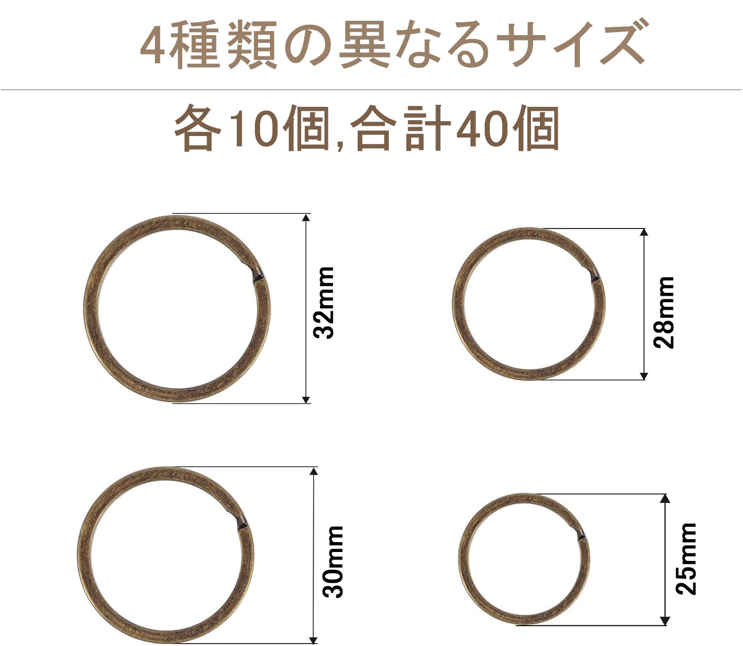 AMUU 平キーリング 外径25mm 28mm 30mm 32mm 40個入(各サイズ10) キーリング リング ステンレスキーホルダー リングキーホルダー・キーリング キーホルダー 金具 ブロンズ