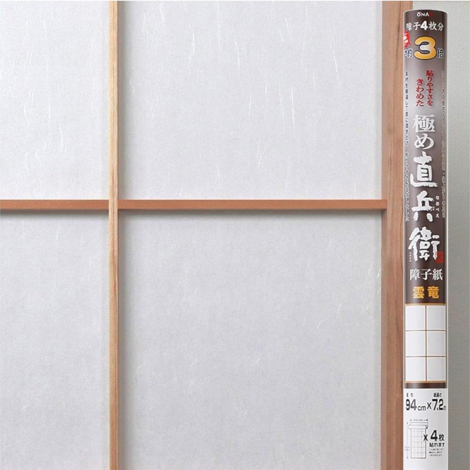 大直 障子紙 極め直兵衛(なおべえ) 巾94cm×長さ7.2m(4枚分) 強さ約3倍 一枚貼り 日本製 雲竜 KN-102 【貼りやすさをきわめた障子紙】