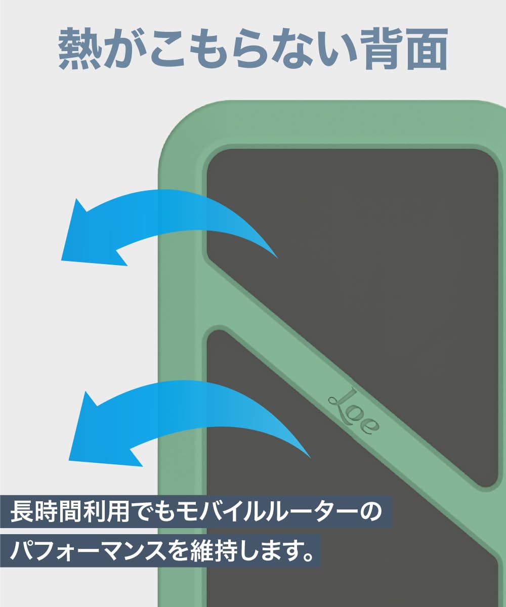【熱がこもらない快適設計】 ケース背面が解放されているため、デバイスの熱がこもりにくく、長時間の使用でもパフォーマンスが安定。モバイルルーターを快適に使用できます。