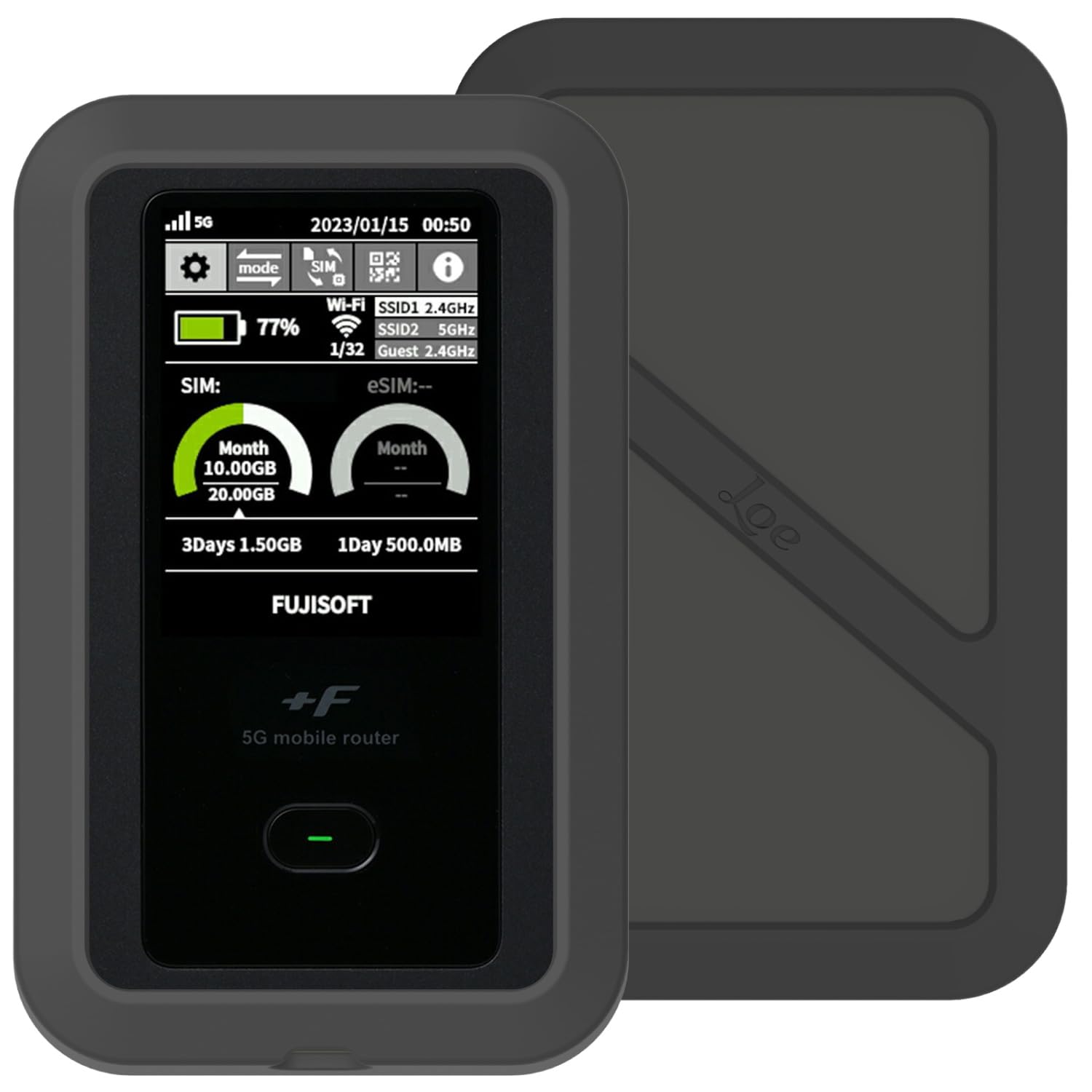 LOE(ロエ) 富士ソフト FS050W 専用 モバイルルーター ケース 日本製 保護フィルム 付 (ブラック)