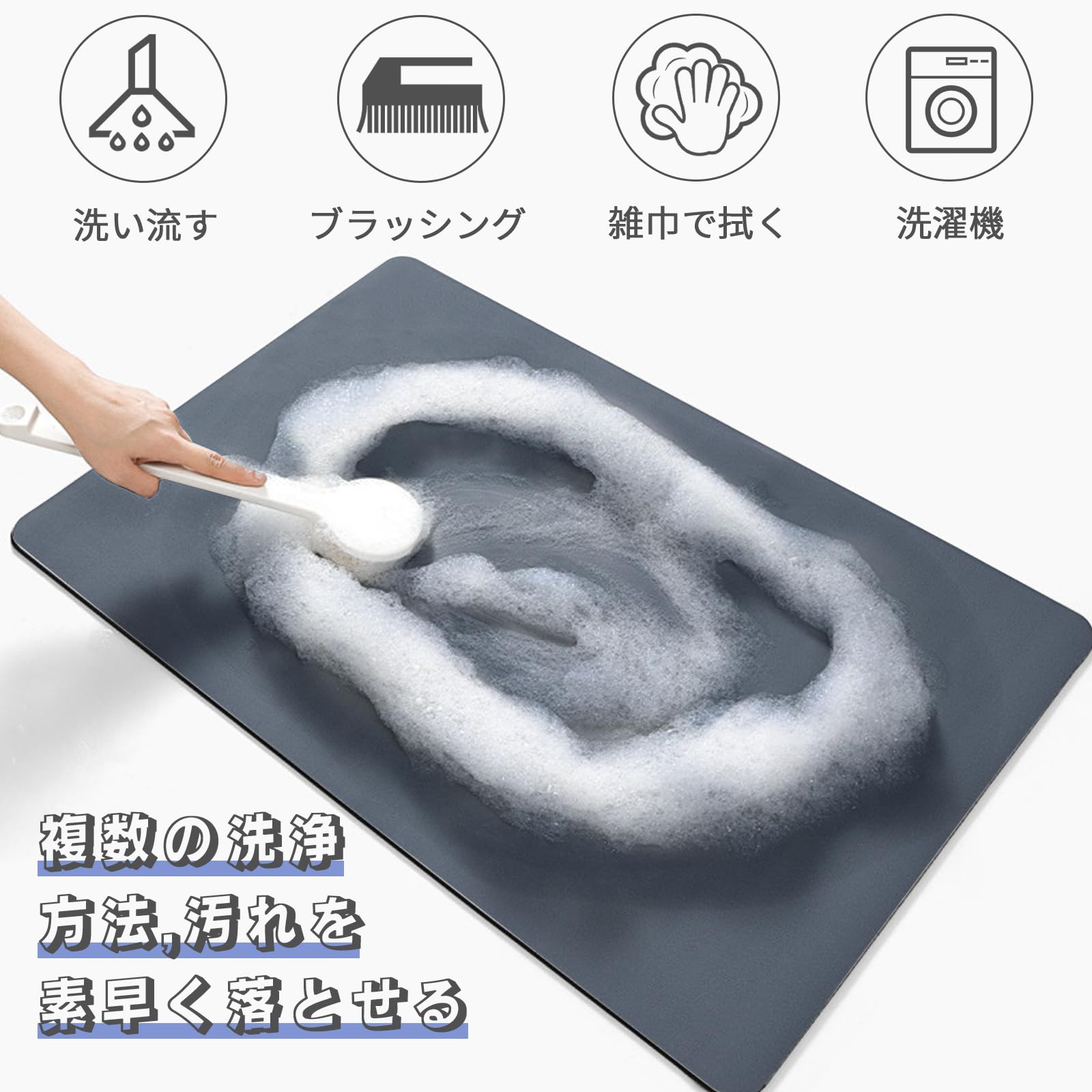 珪藻土 バスマット【驚きの吸水×2・速乾×3】 柔軟 お風呂マット 足拭き吸水 抗菌 滑り止め 収納簡単 洗浄可能 バスルーム 脱衣所 洗面所 マット(40*60, ダークグレー)