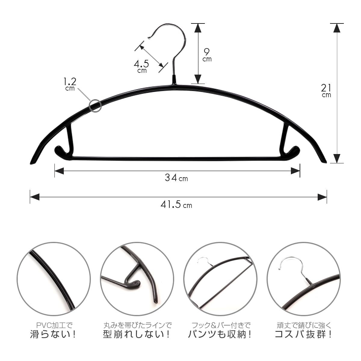 【Point.01 すべらない!】PVC特殊コーティング加工が施されているため、どんな素材の衣類もしっかりホールド! とても滑りにくく、滑り落ちやすい衣類もピタッとかかります。