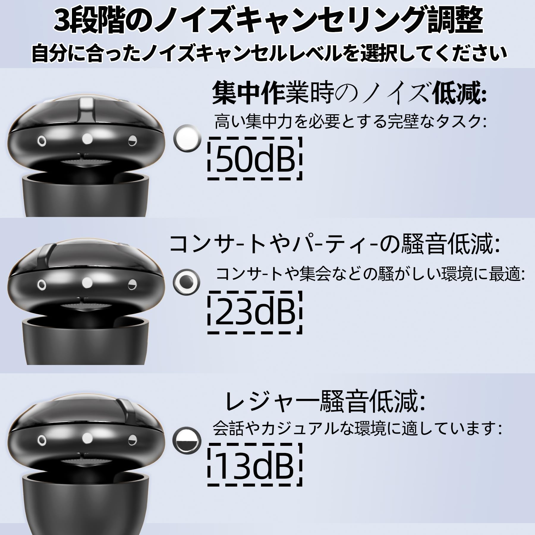 「自分だけの静けさ」 ? 旅行、仕事、就寝時…3段階の遮音モードでどんな環境も快適に。