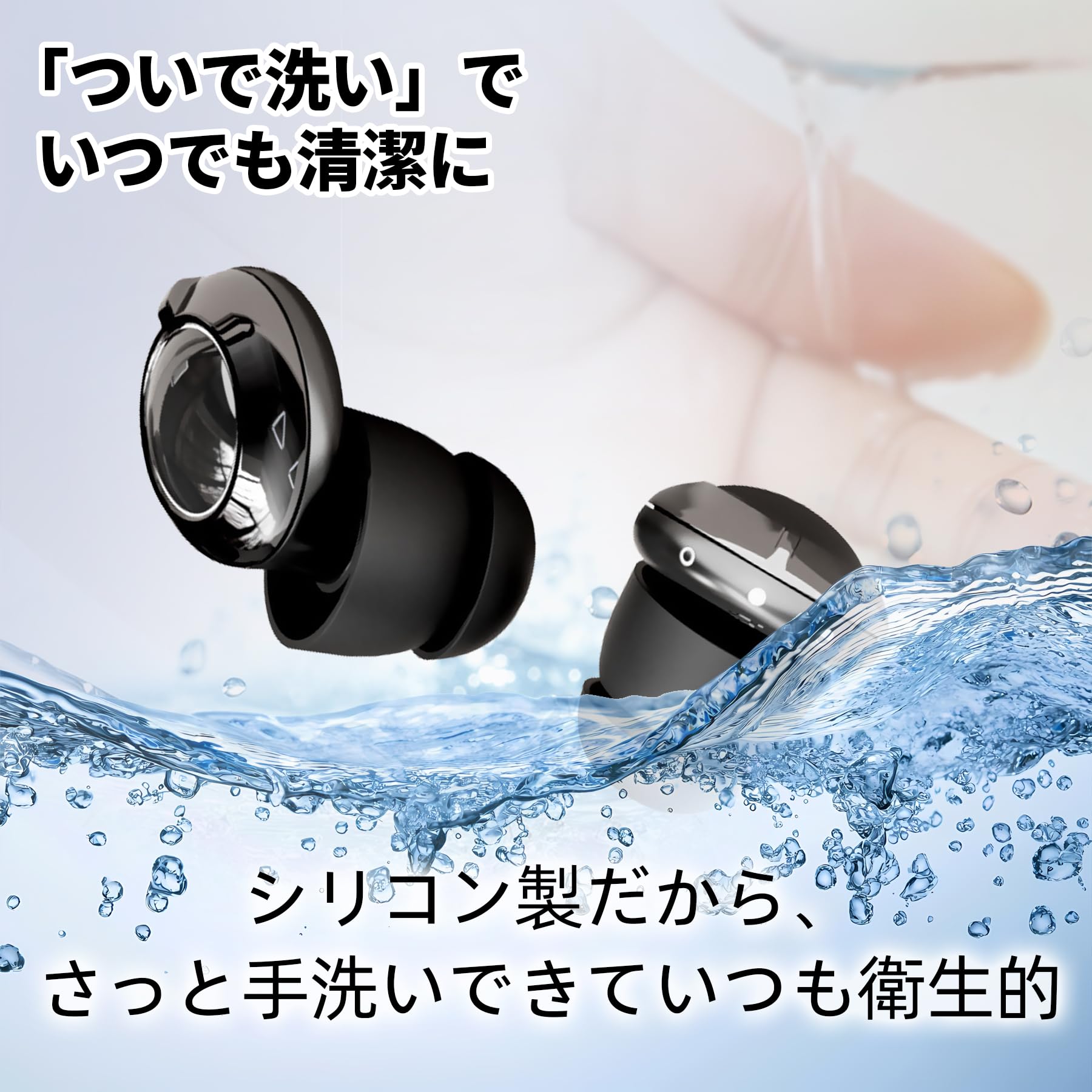 「アクティブな生活にも最適」 ? 防水&再利用可能。水泳、飛行機、都会の喧騒でも活躍。