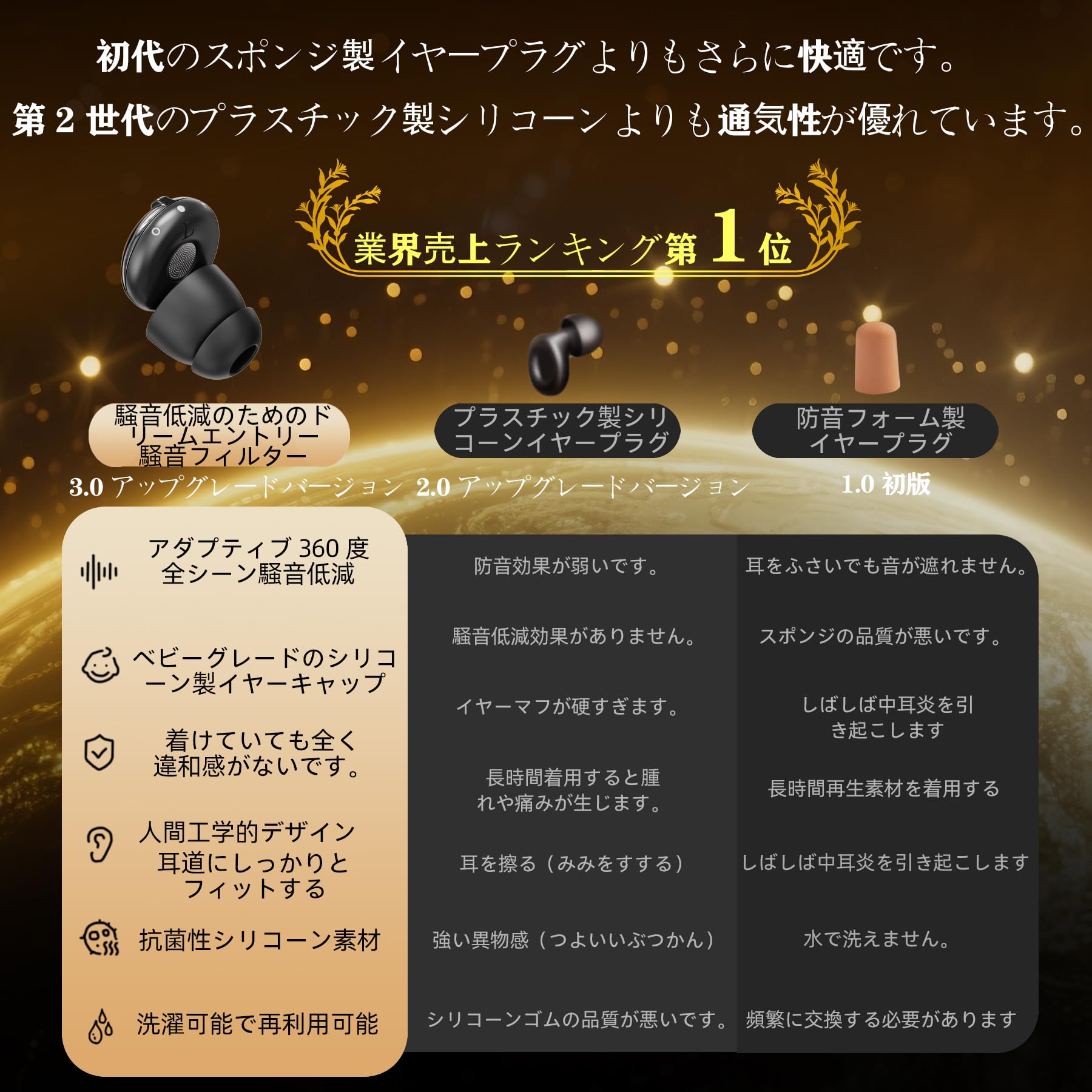 日常の騒音から解放される」 ? いびき、交通音、人混みの雑音を遮断し、心の平穏を手に入れる。