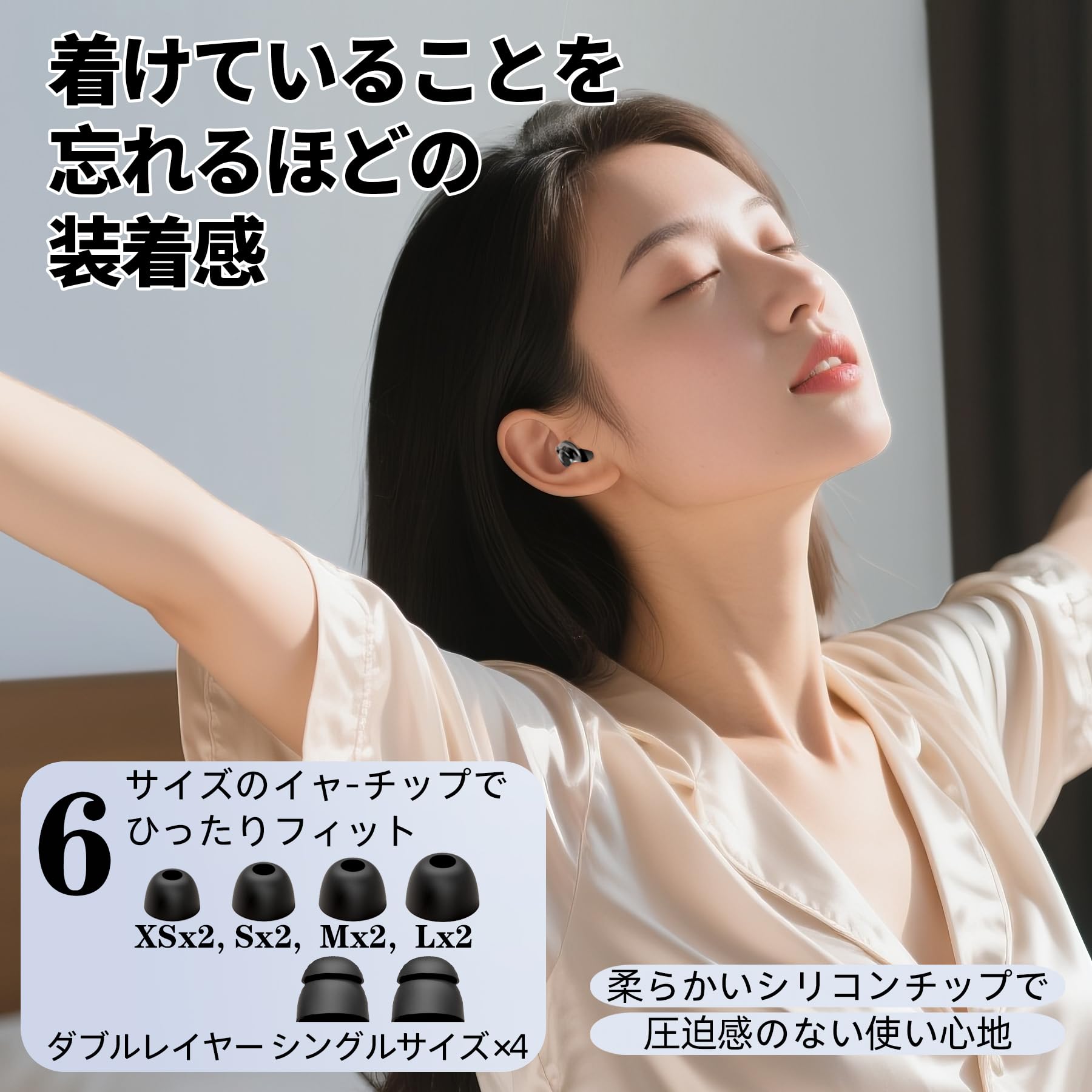 「一日中、快適なフィット感」 ? 超ソフトな設計で、長時間装着でもストレスフリー。