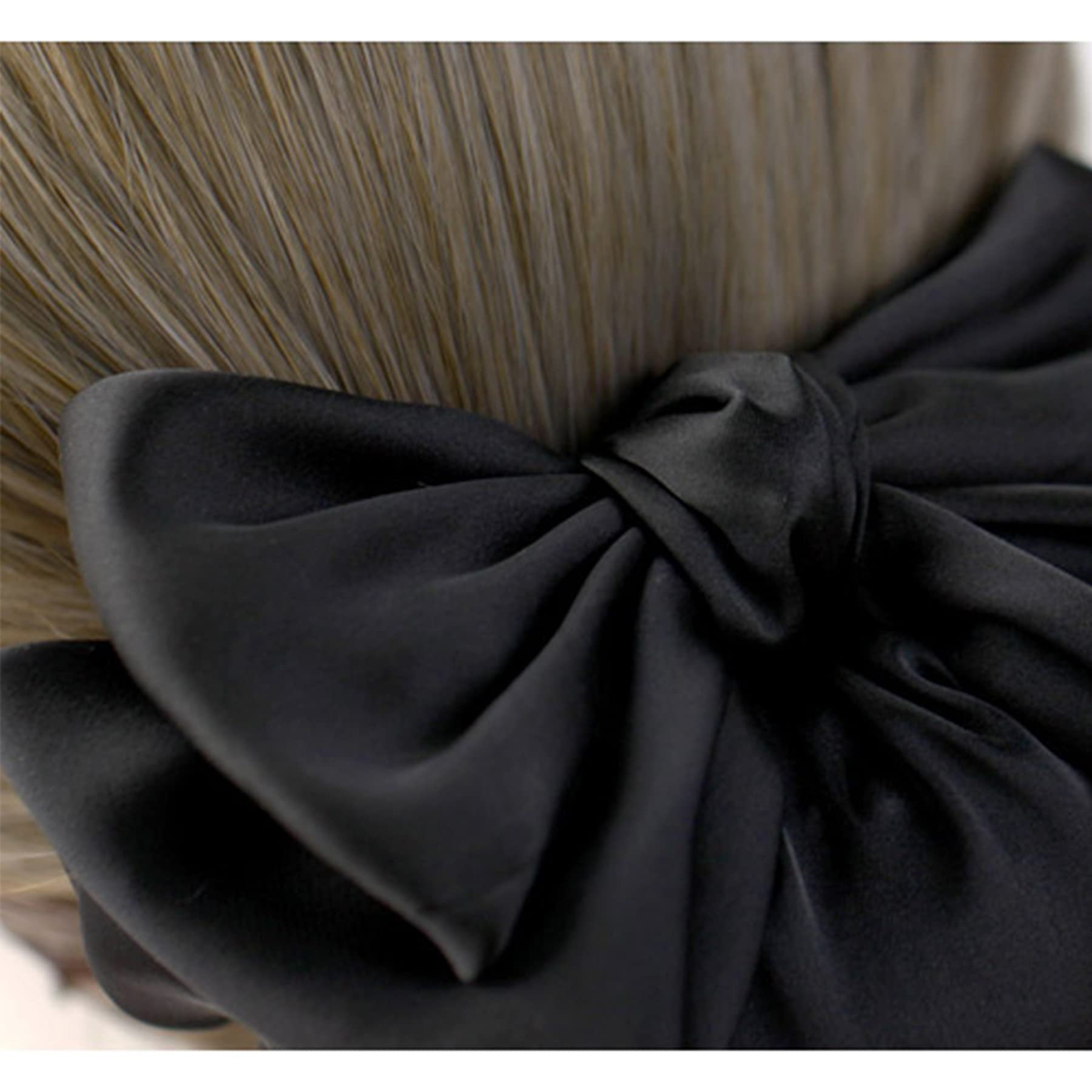 ALLMIRA リボン バレッタ ネット付き 大きめ 黒 髪色隠し 透けない シニヨン ネット カバー キャップ 髪留め クリップ お団子 看護師 おだんご おしゃれ 人気 冠婚葬祭 葬式 レディース ヘアネット(ブラック A)