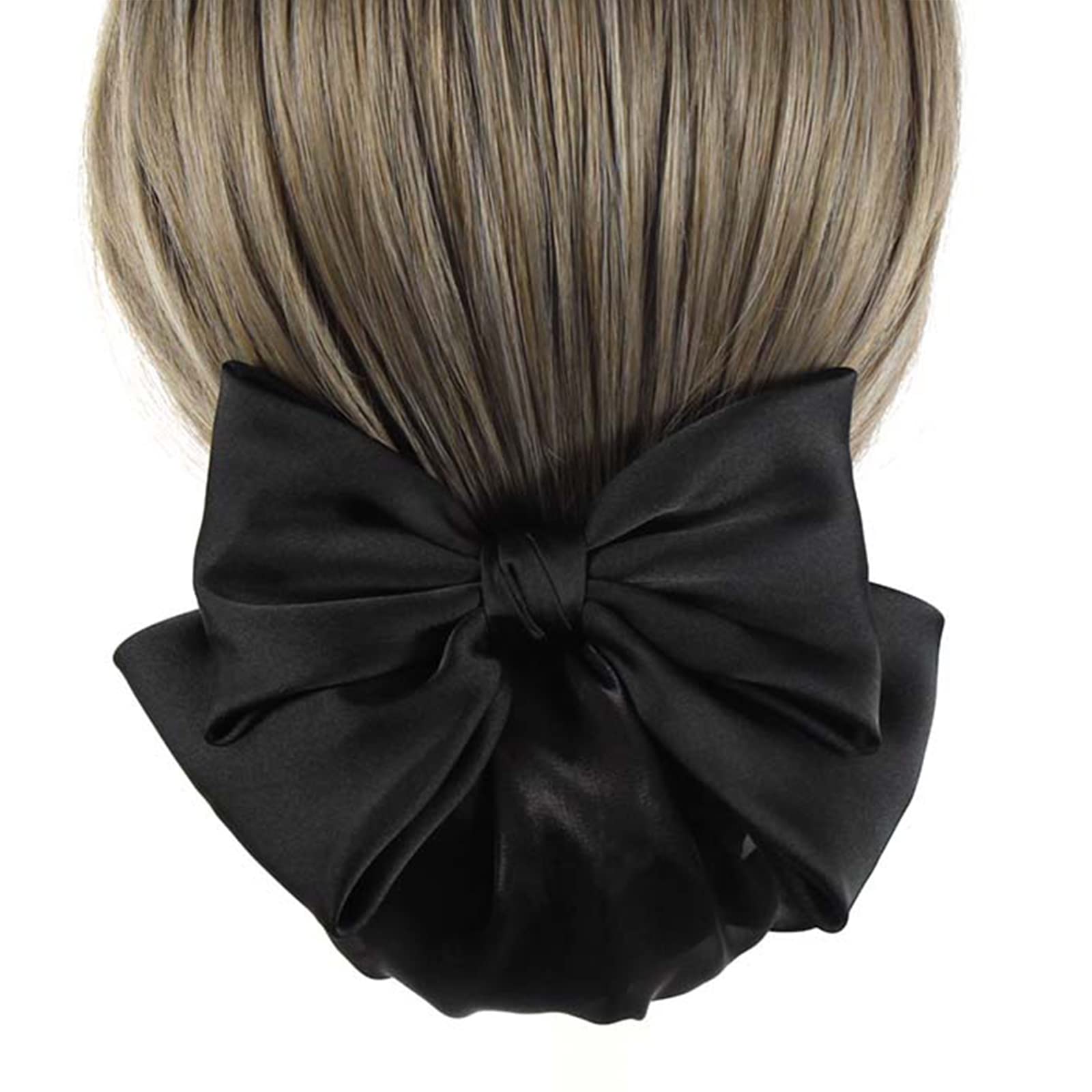 【特価処分】ALLMIRA リボン バレッタ ネット付き 大きめ 黒 髪色隠し 透けない シニヨン ネット カバー キャップ 髪留め クリップ お団子 看護師 おだんご おしゃれ 人気 冠婚葬祭 葬式 レディース ヘアネット(ブラック A)