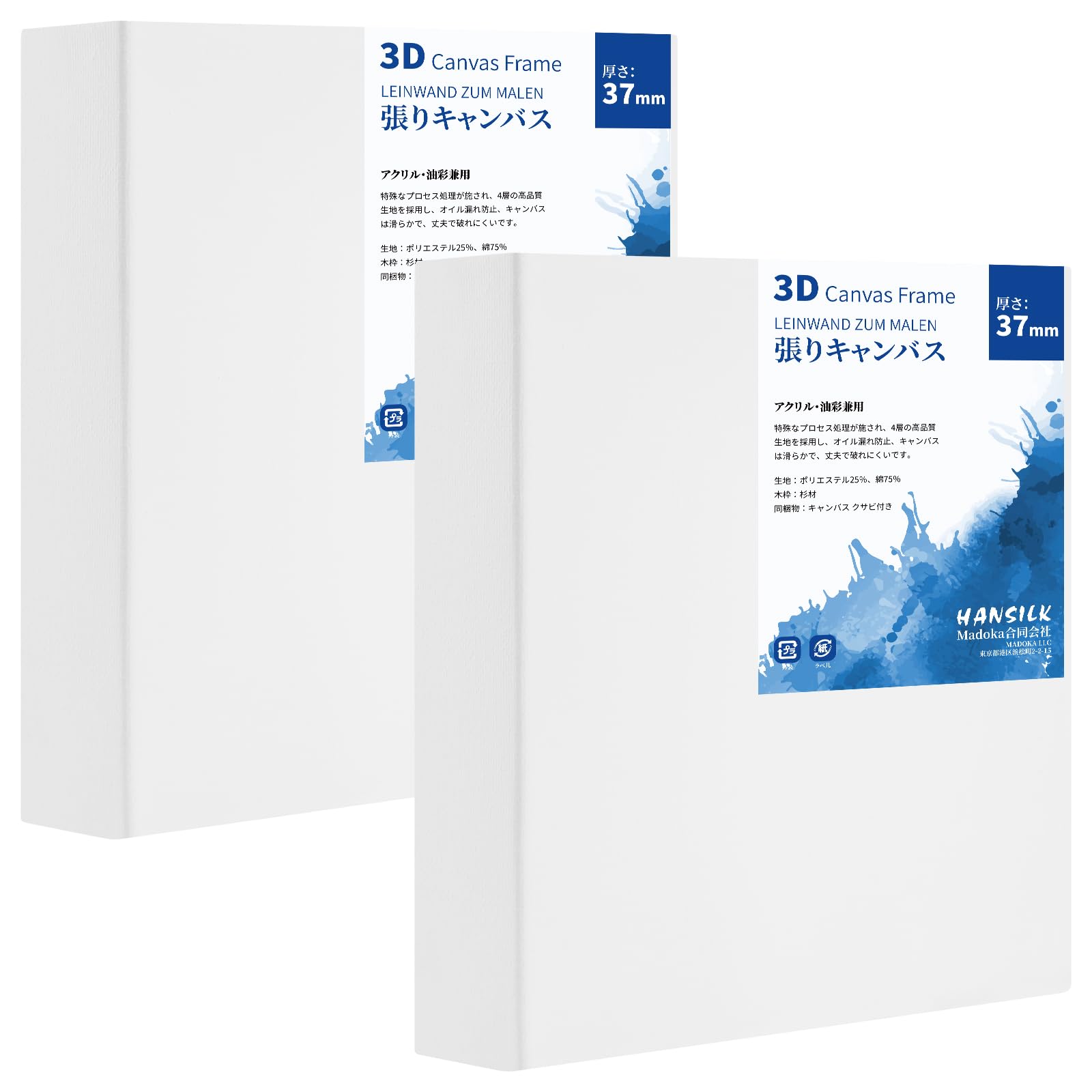 HANSILK 3Dキャンバス S0 180x180mm 厚み37mm 側面にも描ける 2個入り 包み張り キャンバスボード 張りキャンバス 化繊綿 中目 絵画 絵画ボード 水彩絵・アクリル絵・油絵に適用