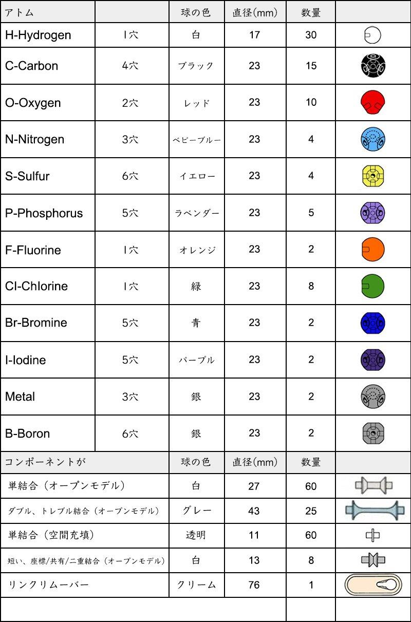 原子パーツ240個セット,複雑・大きな有機分子も組み立てられます