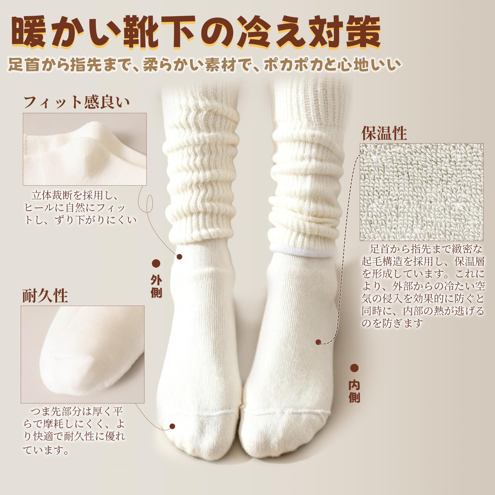 【蓄熱保温防寒モコモコ靴下】あったか靴下は全体的に高密度の網目で編まれています。靴下の繊維間には無数の微小な隙間が足元の暖かい空気をしっかりと閉じ込めます。空気自体は熱の不良導体であるため、形成された「空気断熱層」はまるで魔法瓶のように、足の熱が外部に逃げるのを防ぐと同時に、外部の冷たい空気の侵入も遮断します。ホームウェアとして、寒い季節を快適にお過ごしいただけます。