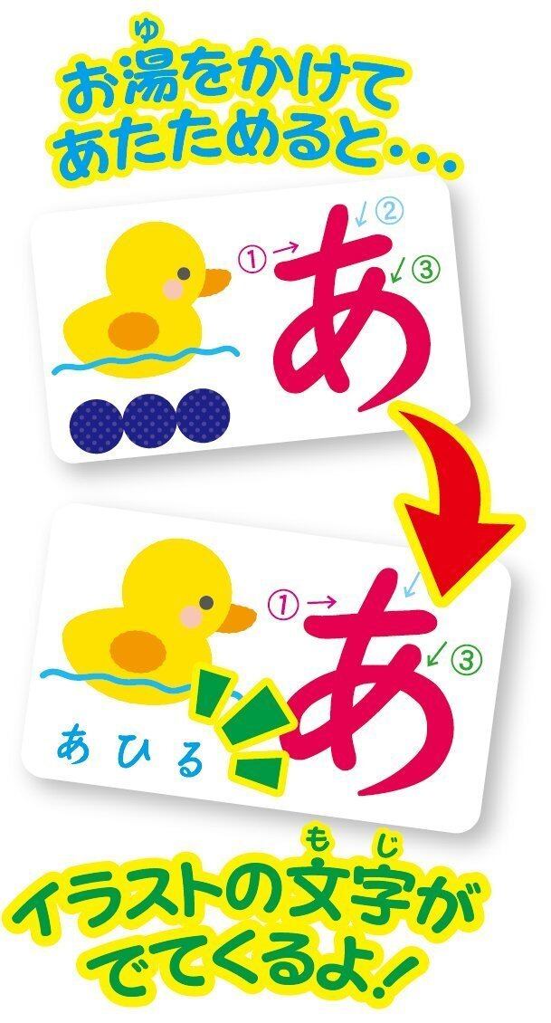 ★お湯をかけたり温めると答えが出て、繰り返し学ぶことができます。名前やひらがなを学ぶことができます。