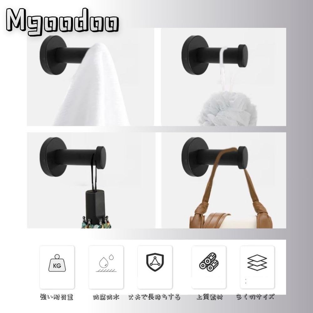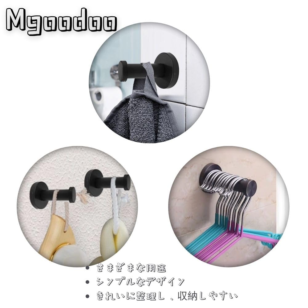 ステンレス 壁掛け フック ウォールフック Mgoodoo 壁掛けフック ハンガー 収納 ネジ付き 帽子掛け コート掛け (40*55mm ブラック 4個)