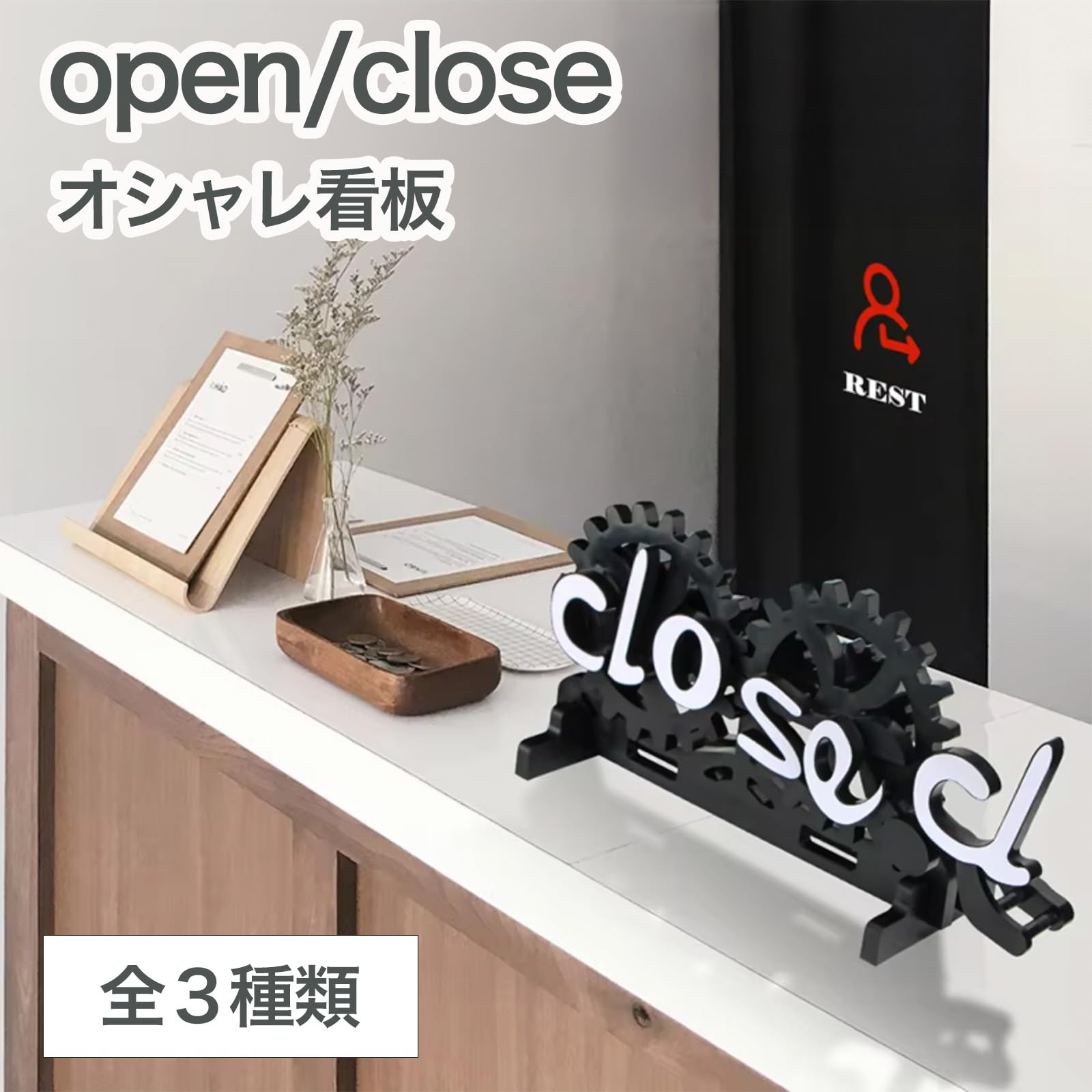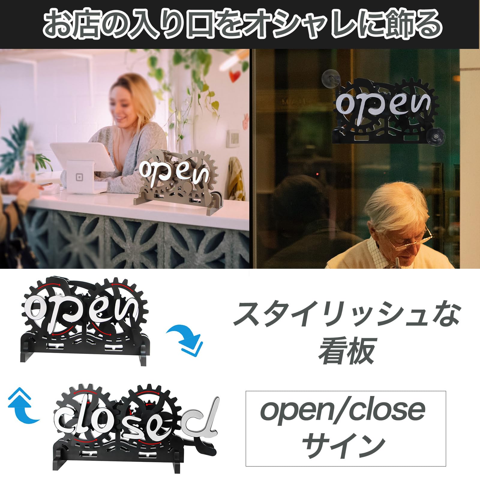 ブラックカラーで、スタイリッシュな雰囲気の営業中看板に!お店の入り口をおしゃれに飾る、OPEN/CLOSEサイン