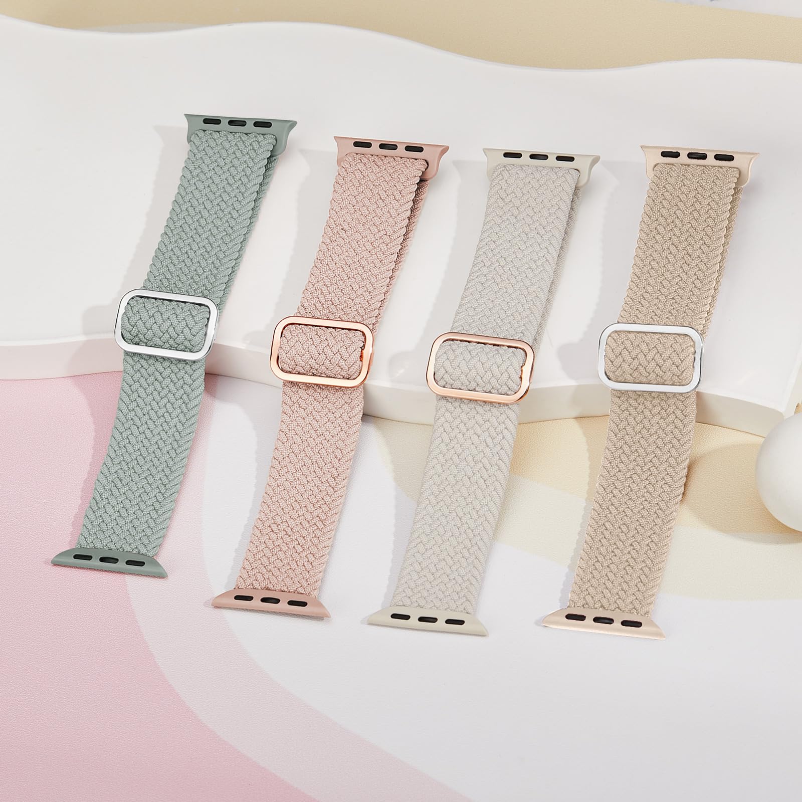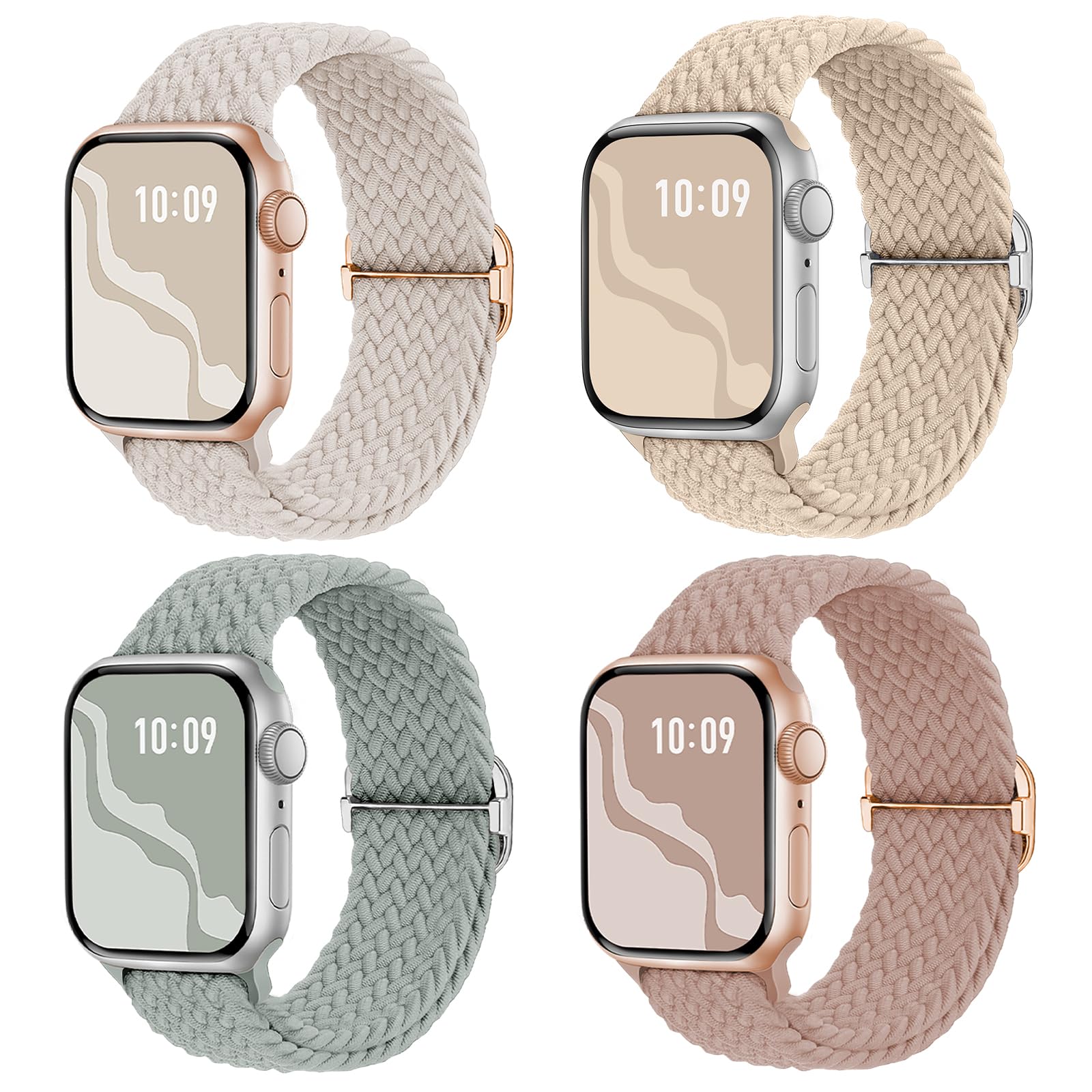 【4枚入り】Suitisbest コンパチブル アップルウォッチ バンド 編み込み 42mm 41mm 40mm 38mm Apple Watch ナイロンバンド 伸縮性 ゴム アップルウォッチ スポーツベルト Series 11 10 9 8 7 6 5 4 3 2 1 SEに対応 長さ無段階調整 柔軟 通気 防汗