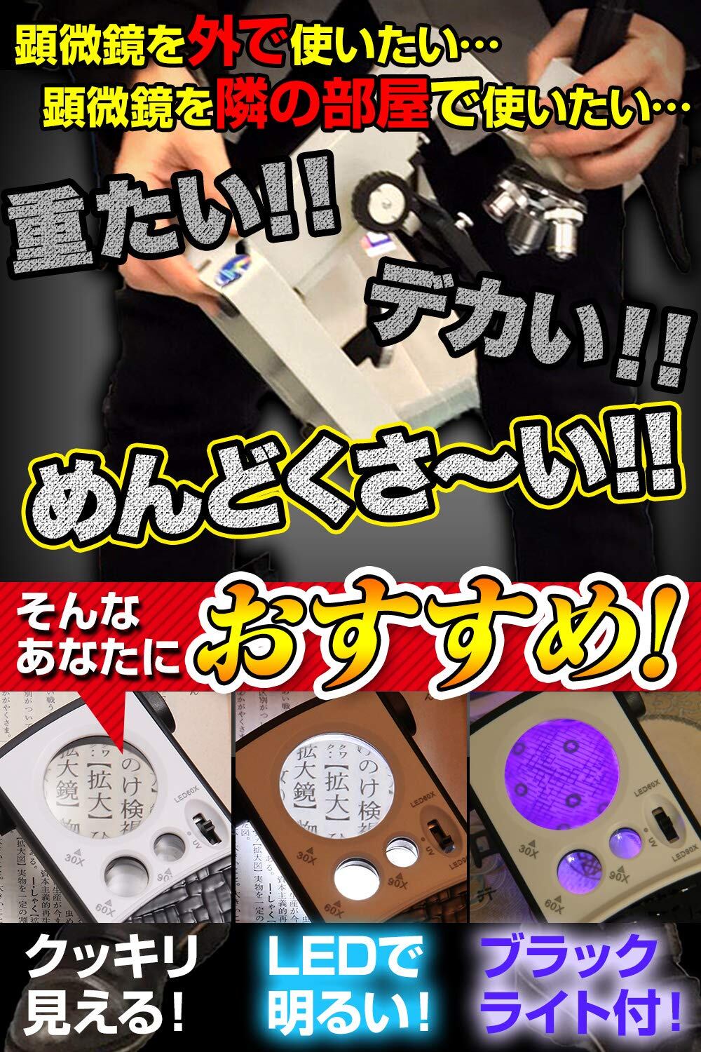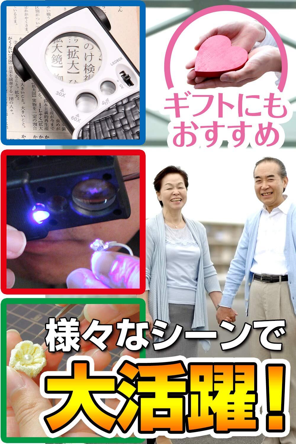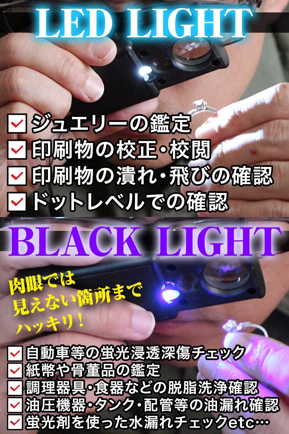 【新着特価】ジュエリー鑑定 校正・校閲用 携帯ルーペ【30倍&60倍&90倍】3種類レンズ/LEDライト/ブラックライト付き (ブラック)