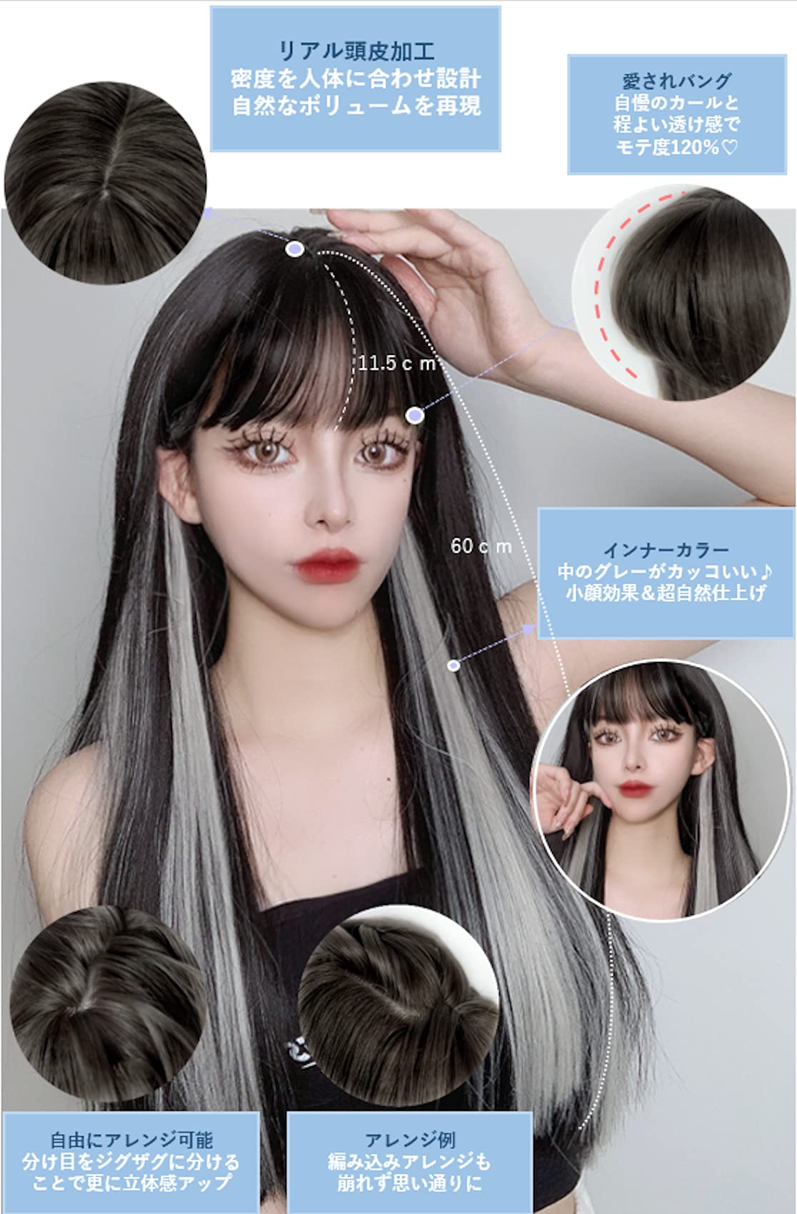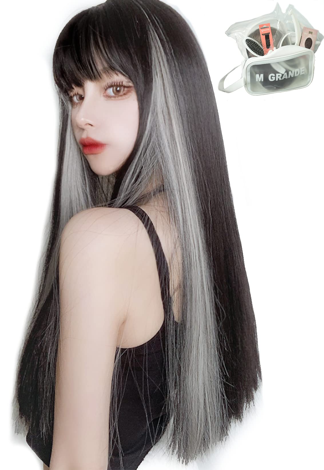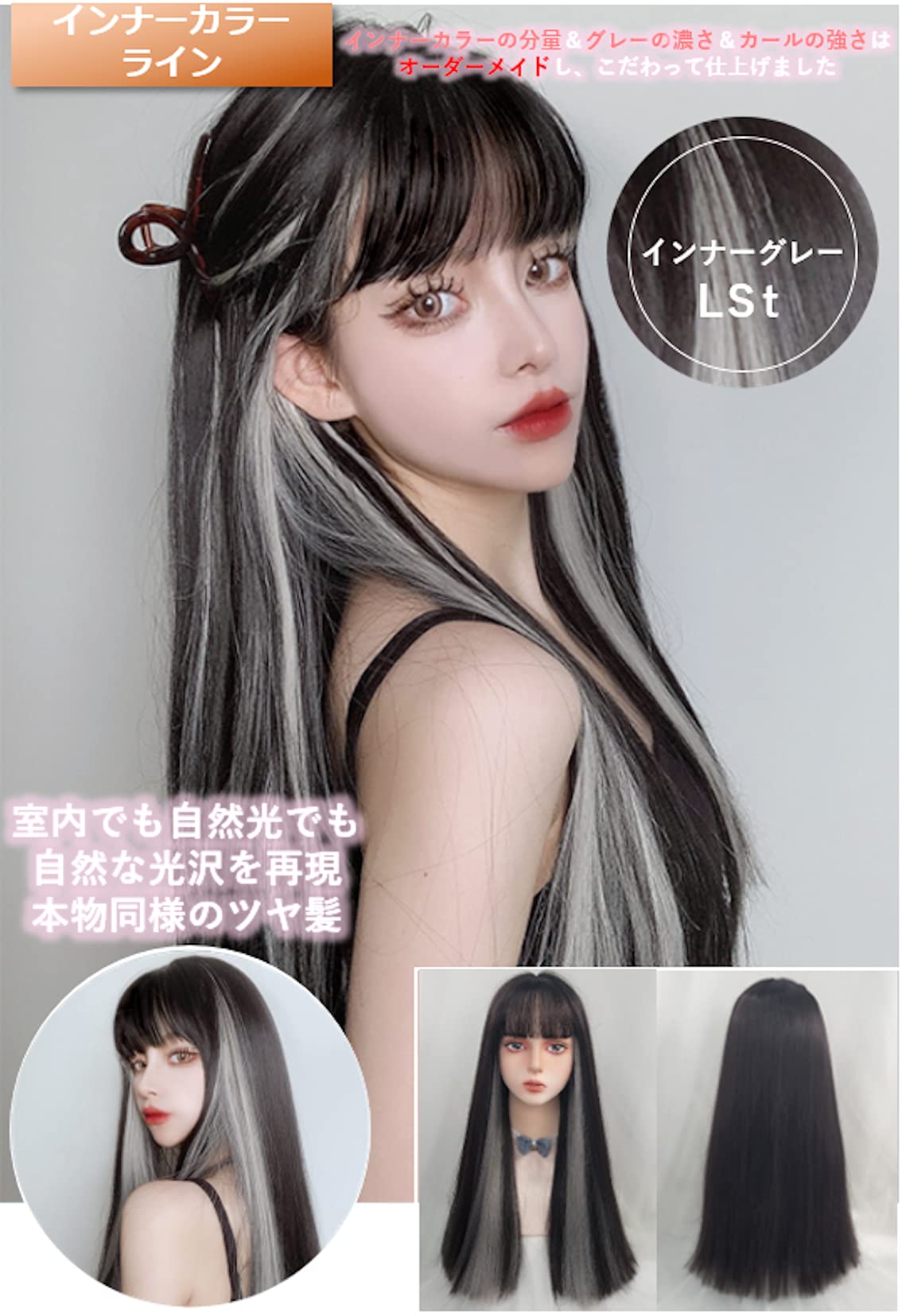 エムグランデ ウィッグ プレミアムライン 【現役トップスタイリスト監修】 6点セット 姫カット インナーカラー レディース かつら wig ボブ ロング 小顔効果(インナーグレーLSt DY03A)