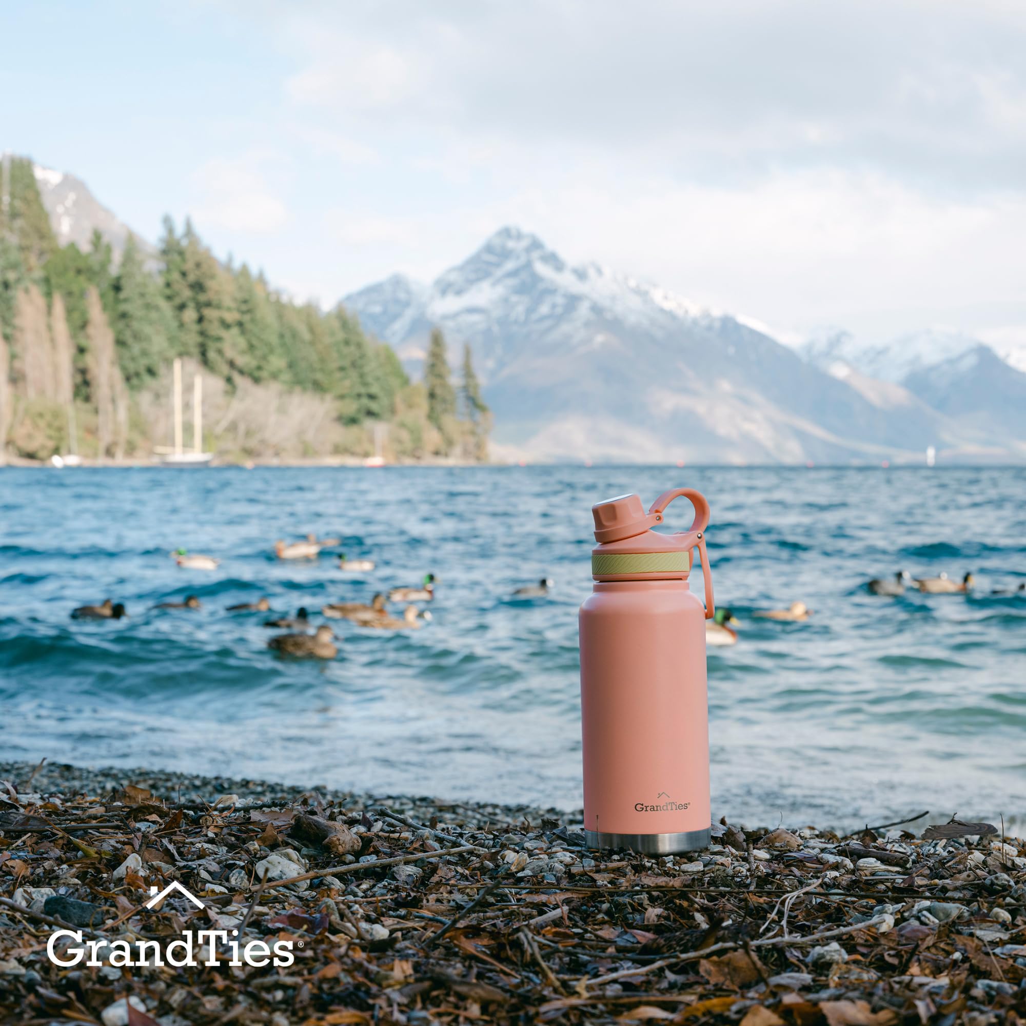 【数量限り】GRANDTIES グランタイズ プレミアム 全9色 水筒 マグボトル 真空断熱ステンレスワイドマウスボトル ビッグサイズ 946ml 2種類の蓋付き & 洗浄簡単大開口 広口で氷が入れやすい(ローズソルト)