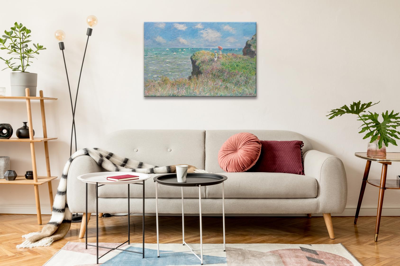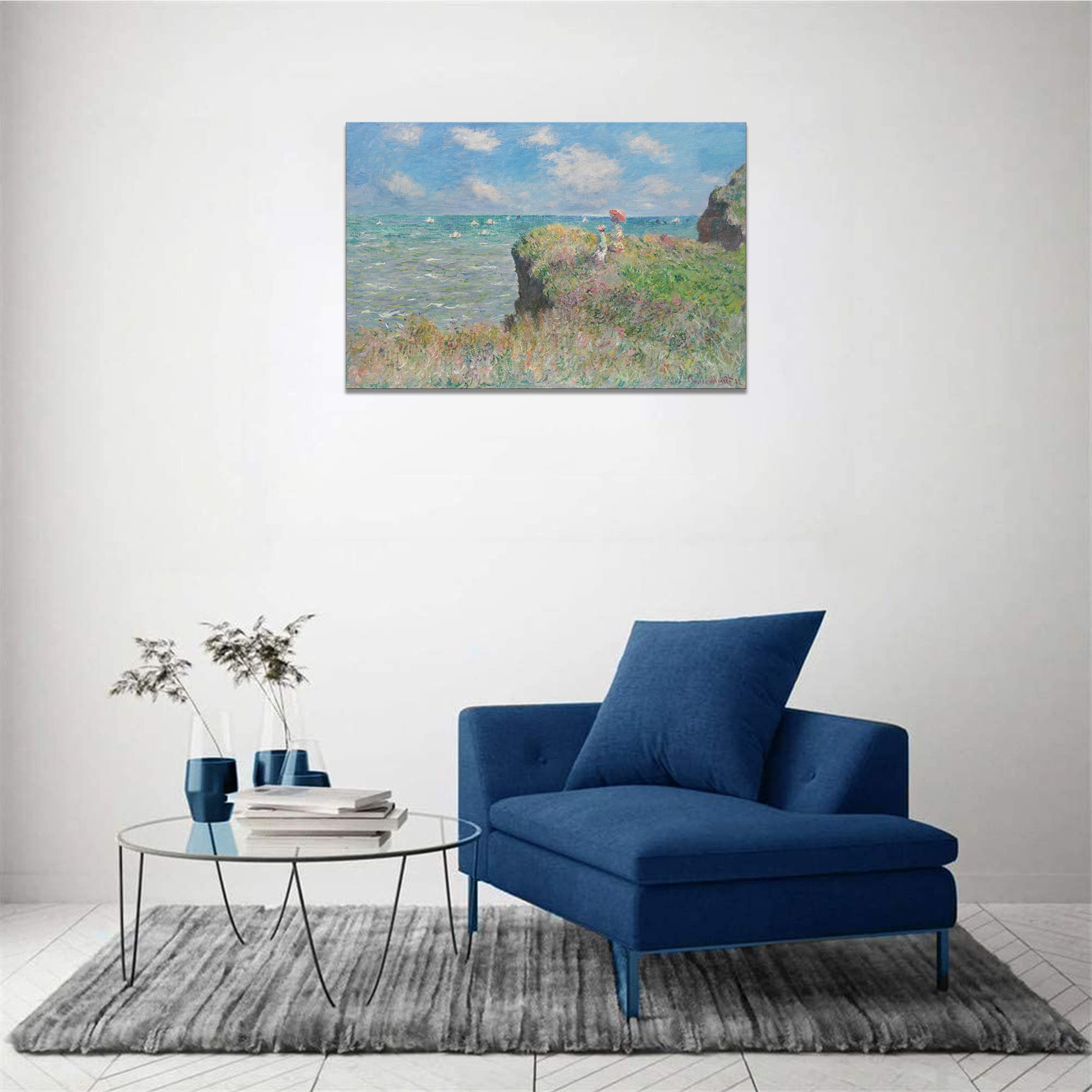 アートパネル モネ ポスター 壁掛け クロードモネ プールヴィルの断崖の上の散歩 絵画 インテリア 額付き 油絵 玄関に飾る絵 風水 開運 (40x60cm)