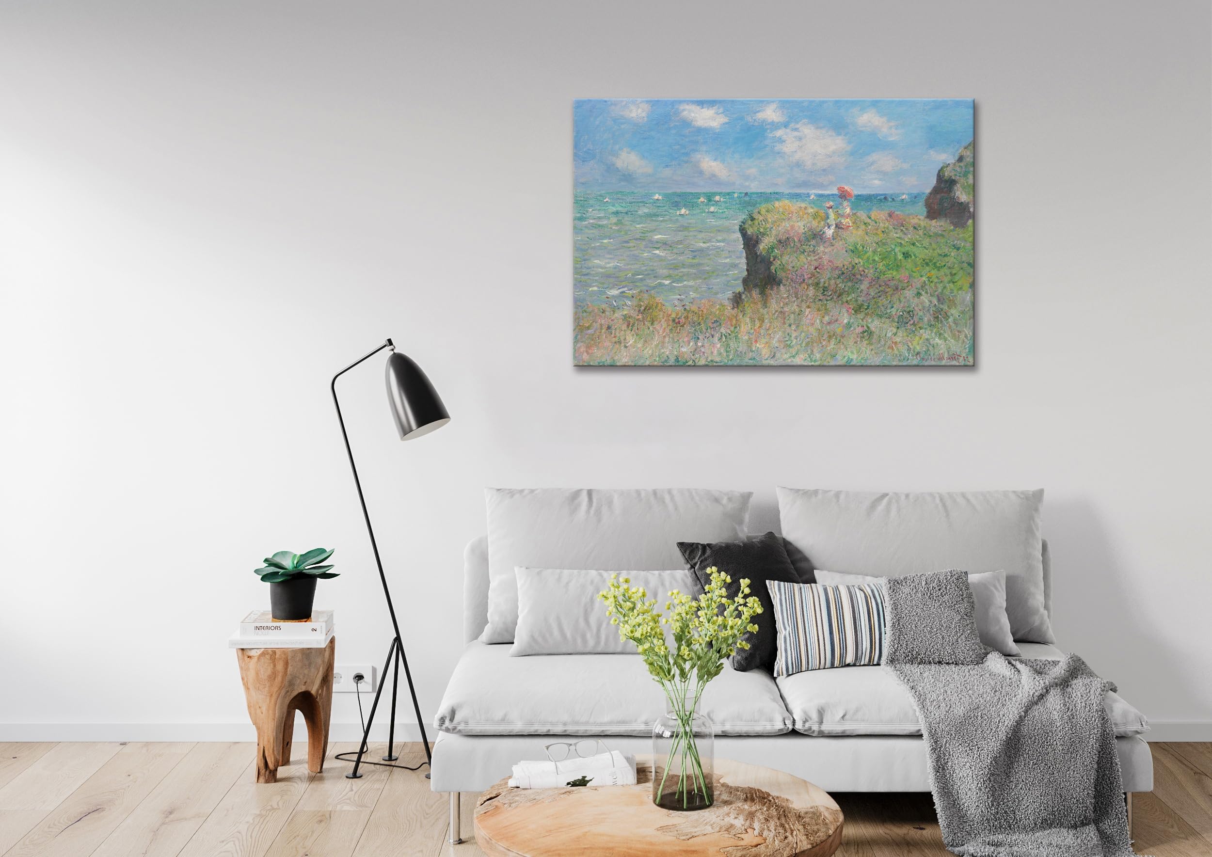 【在庫のみ】アートパネル モネ ポスター 壁掛け クロードモネ プールヴィルの断崖の上の散歩 絵画 インテリア 額付き 油絵 玄関に飾る絵 風水 開運 (40x60cm)