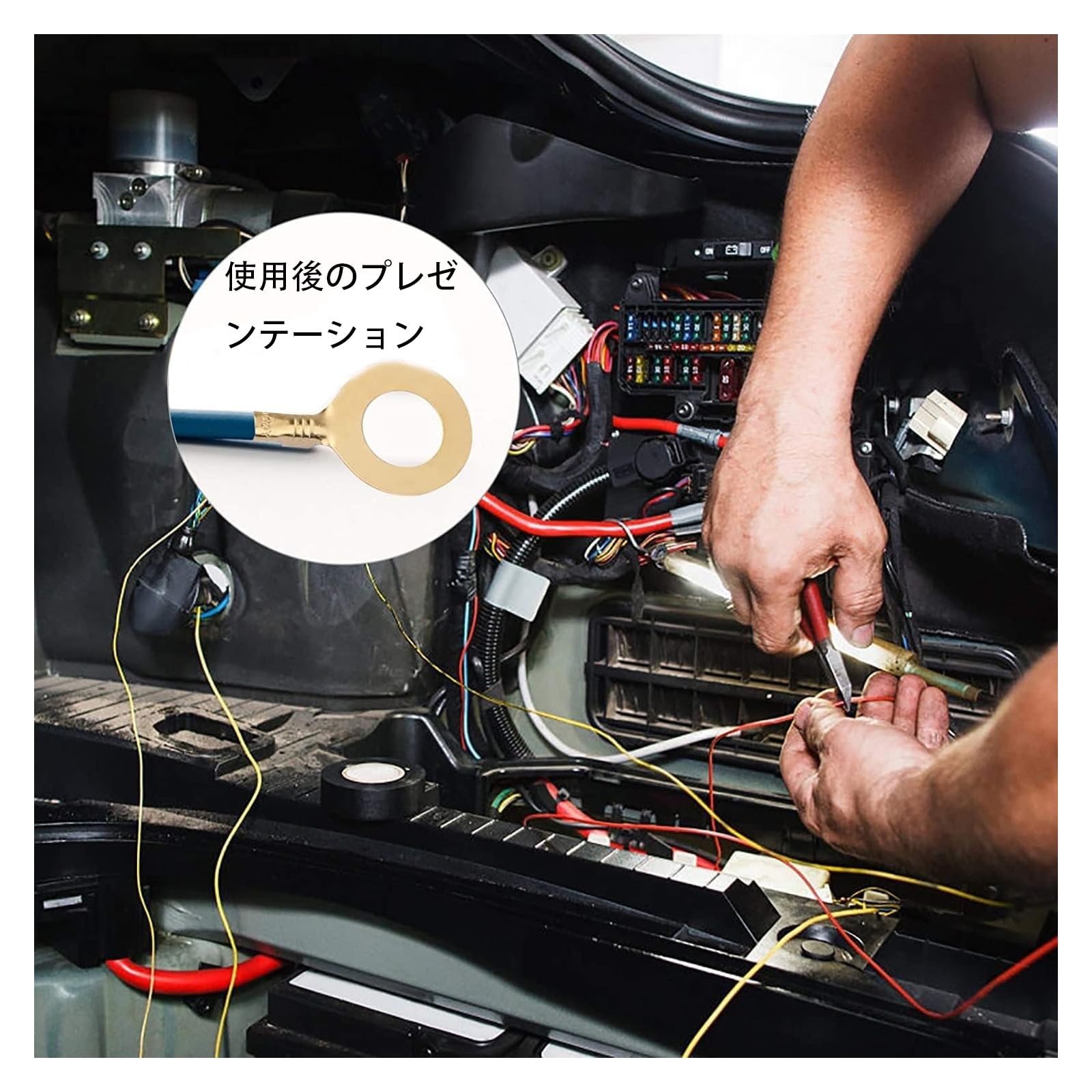 【取付】バッテリーのプラスターミナルに配線を直接に繋ぎます。電気コネクタキット。操作が簡単、はんだ付けキットの必要はありません。