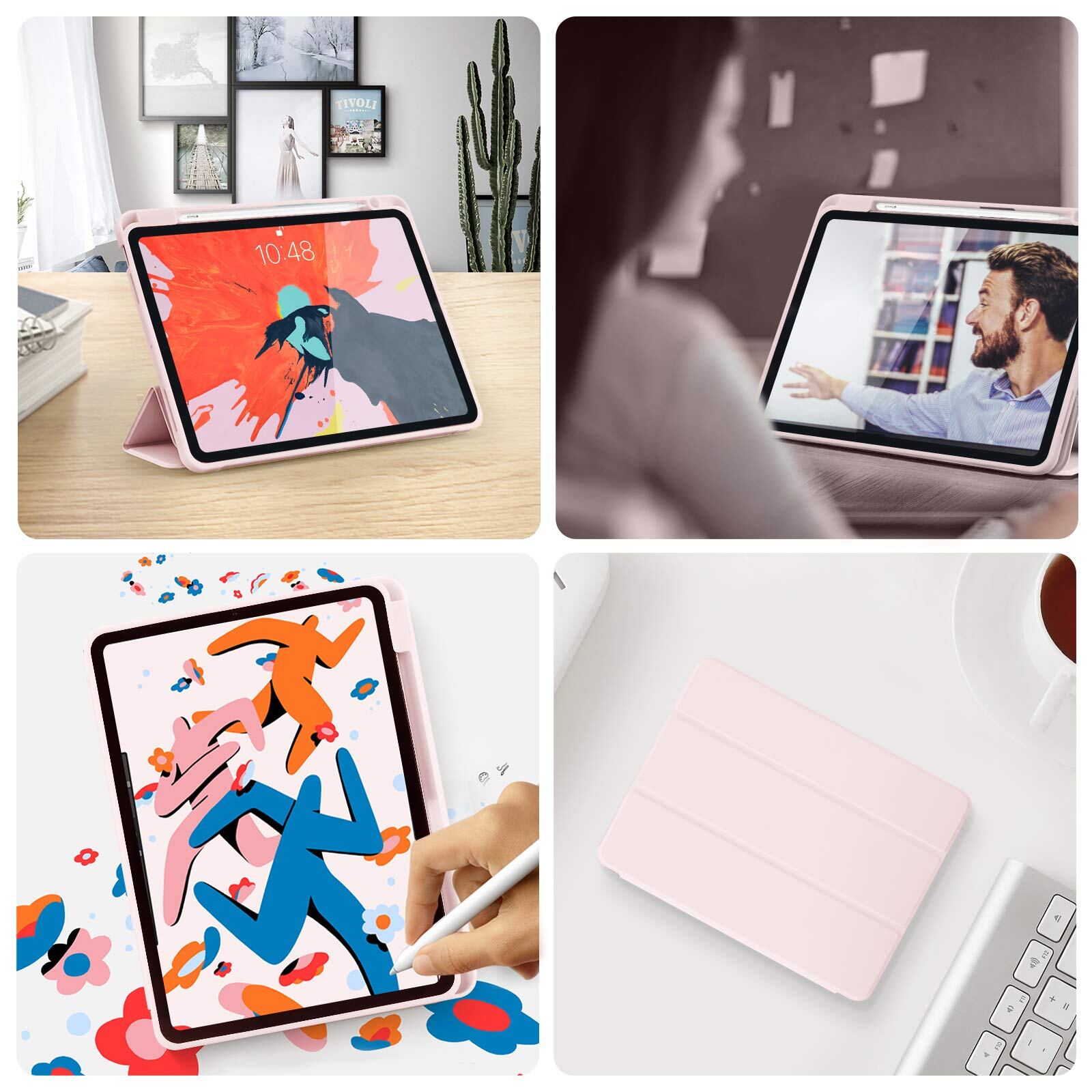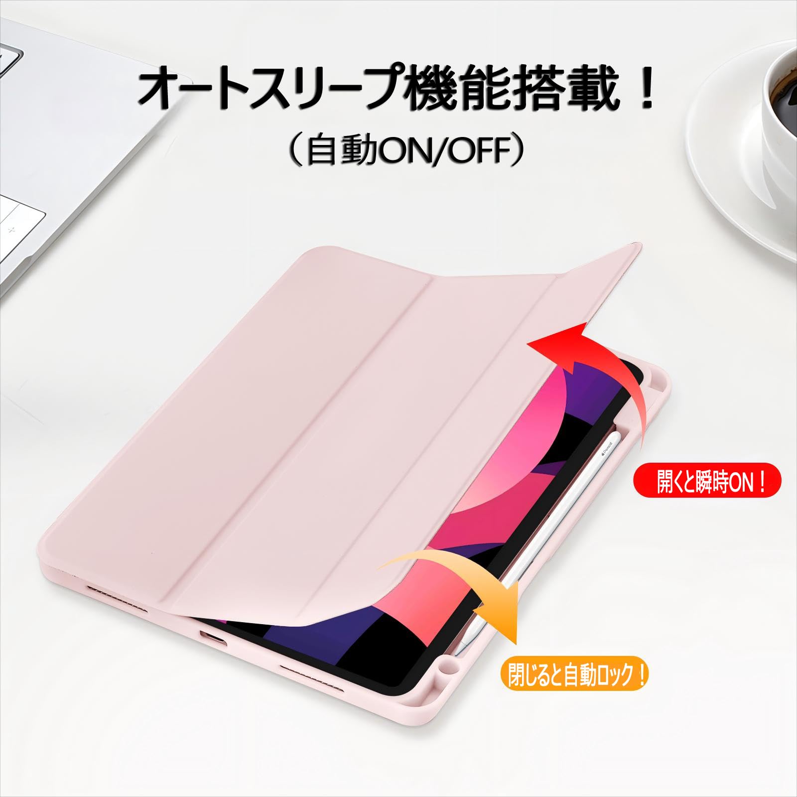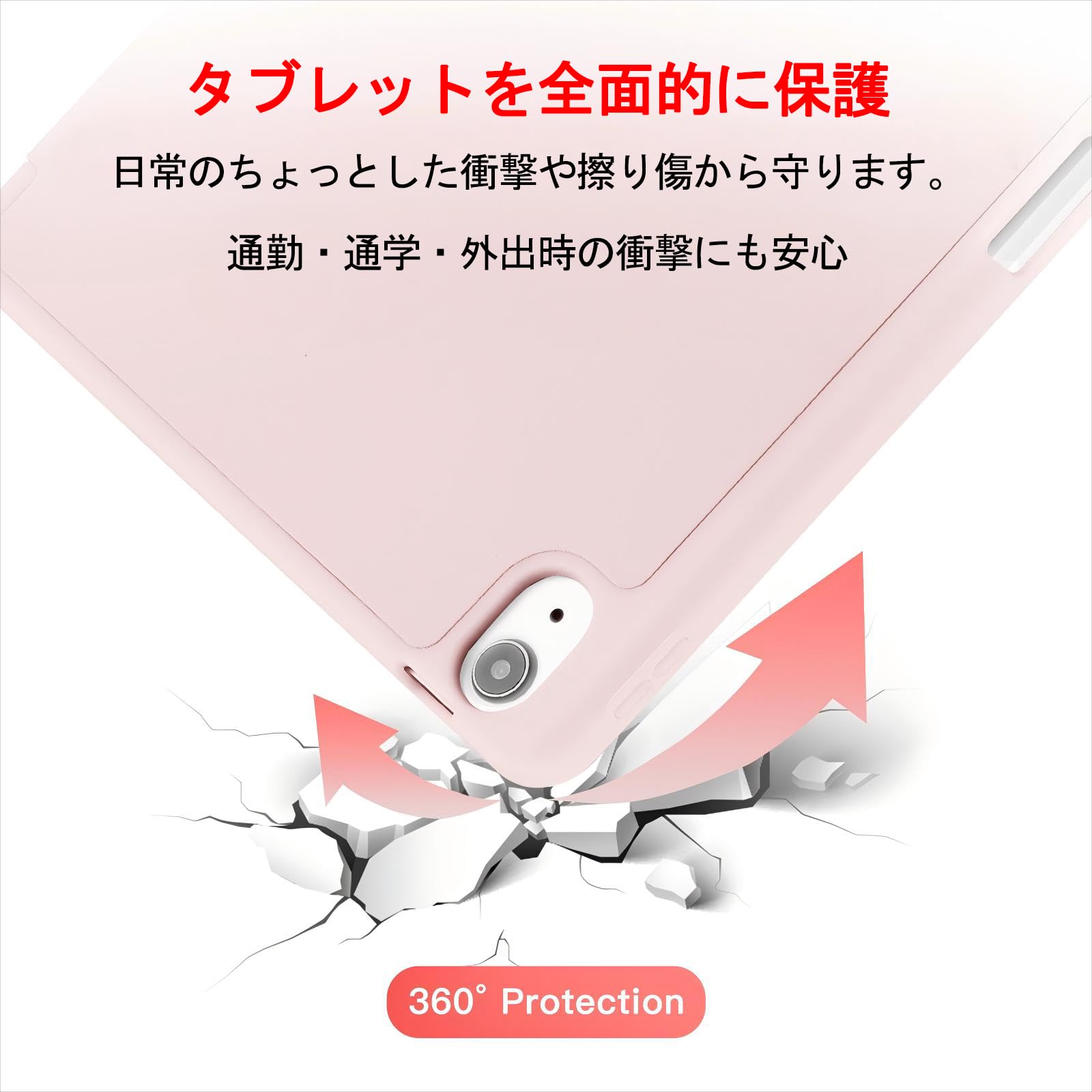 iPad Air 11 インチ ケース M3/M2 2025/2024 iPad Air 第5/4世代 カバー 2022/2020年 10.9インチ Pencil Proペン収納 Apple Pencil2 ワイヤレス充電対応 オートスリープ/ウェイク機能対応 ソフト TPU 薄型 軽量 耐衝撃 三つ折りスタンド (ピンク)
