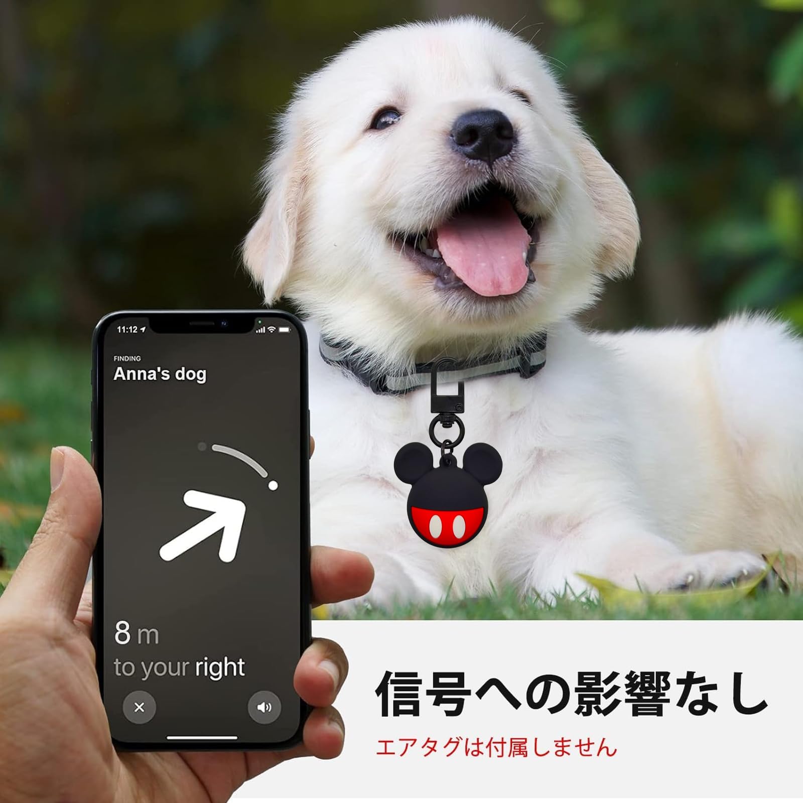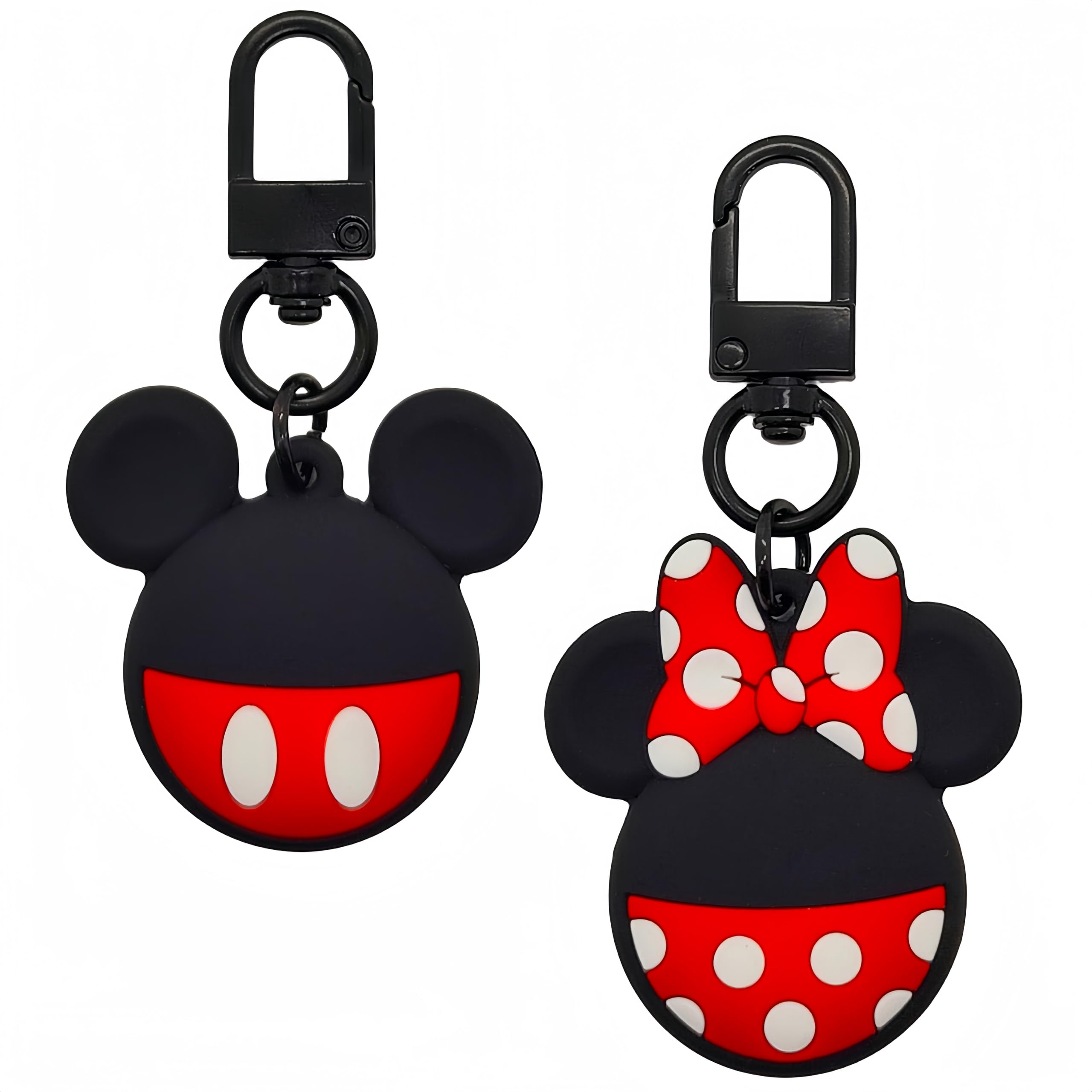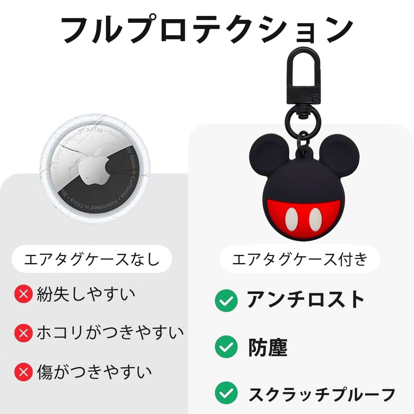 2枚セットミニーマウス AirTag ケース エアタグ用 IPX8防水 環境に優しい素材ソフトシリコン製 耐油性 軽量 難燃性 耐衝撃 AirTag キーホルダー スマホ/カバン/鍵/荷物/財布/犬用首輪/などに掛ける AirTag対応 保護カバー キーリング付き 紛失防止