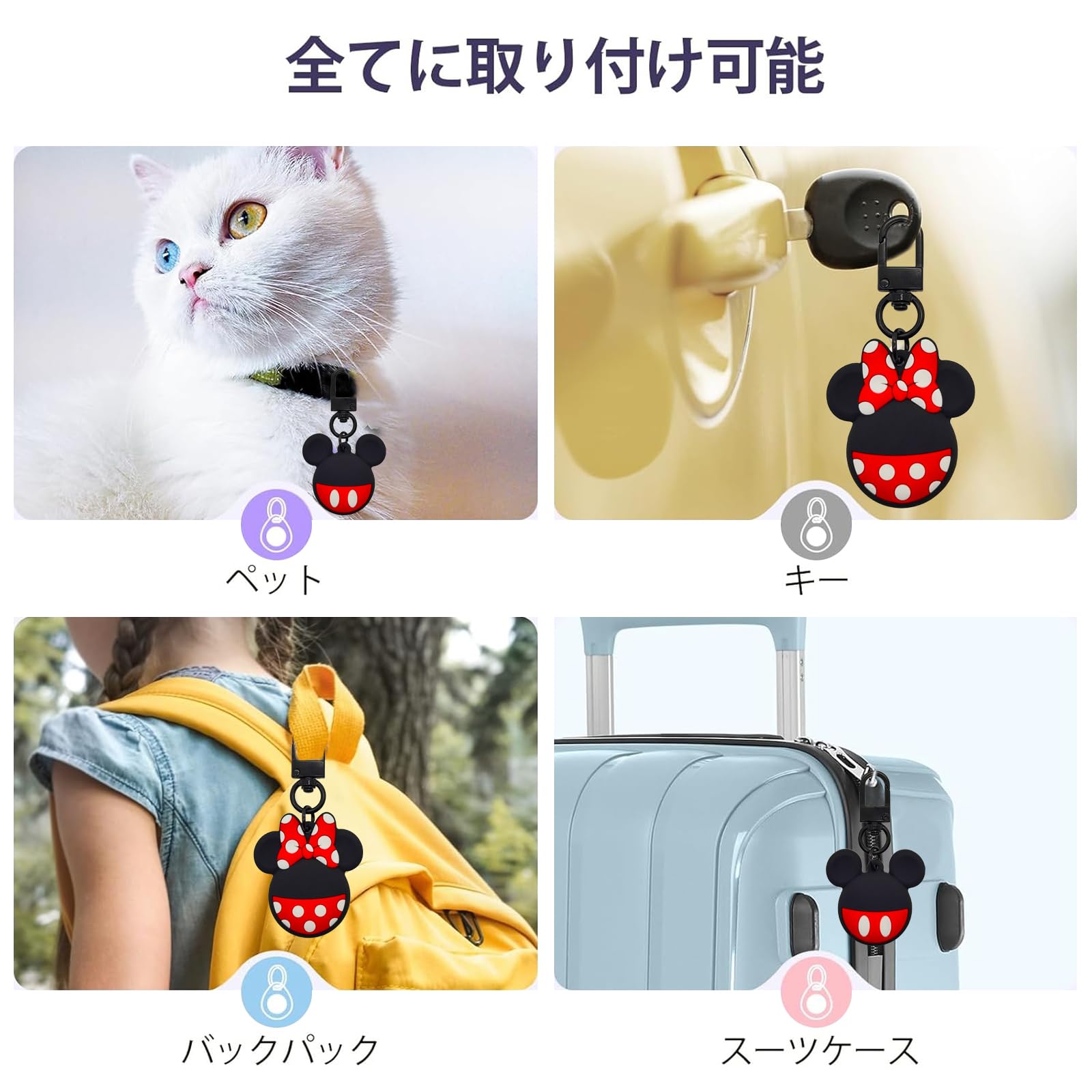 【努力特価】2枚セットミニーマウス AirTag ケース エアタグ用 IPX8防水 環境に優しい素材ソフトシリコン製 耐油性 軽量 難燃性 耐衝撃 AirTag キーホルダー スマホ/カバン/鍵/荷物/財布/犬用首輪/などに掛ける AirTag対応 保護カバー キーリング付き 紛失防止