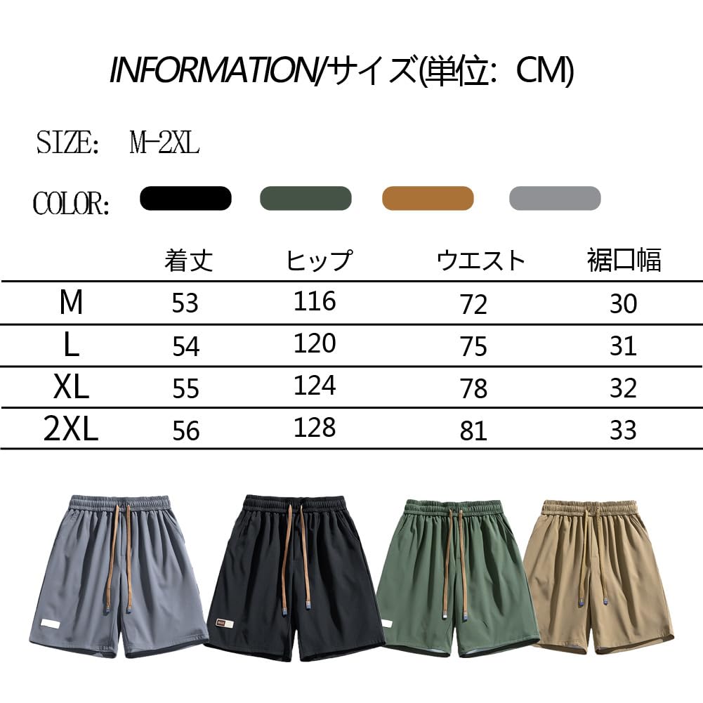 【1】ハーフパンツはポリエステルの材質を採用しており、生地はしわになりにくくて、通気性と吸汗性が優れています。半ズボンはゆったりしているので、動きやすいです。暑い夏は汗をかいてつらい思いをする心配はありません。