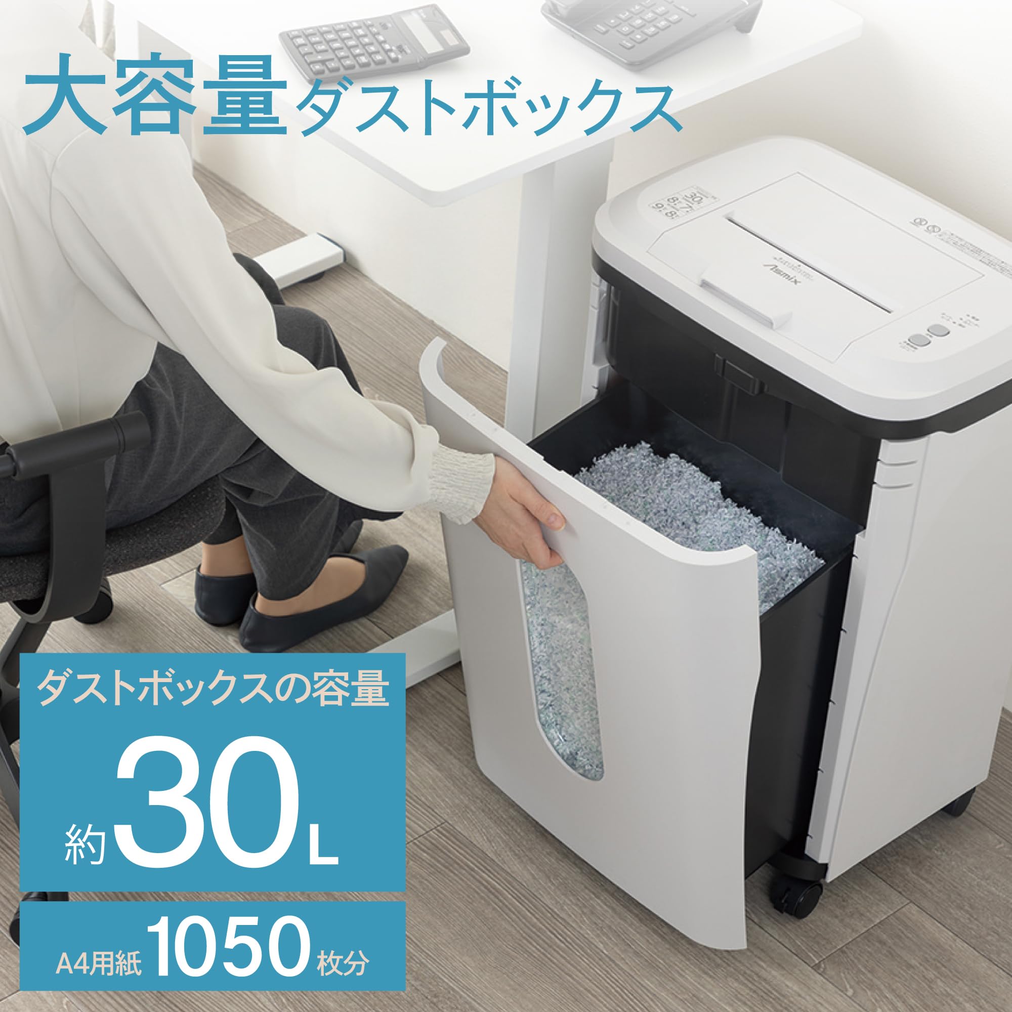ダストボックス容量:約30L(A4細断時約1050枚)