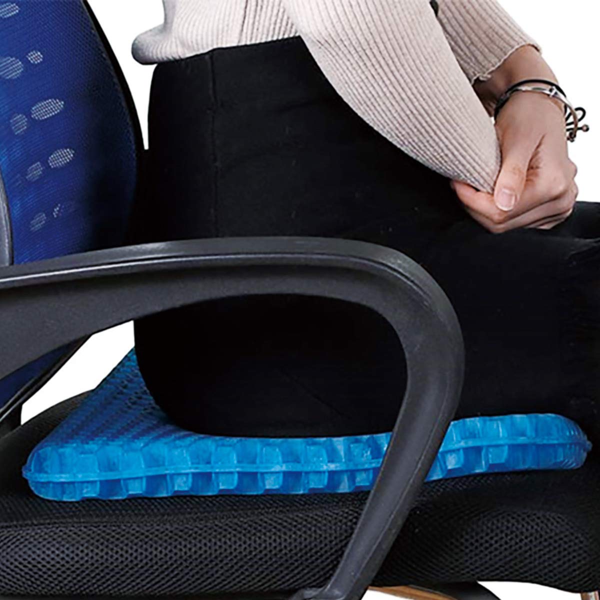 驚異の衝撃吸収力!衝撃吸収に優れたハニカム構造のゲルが体圧を分散し、お尻が痛くなりにくく、快適に座っていただけます。