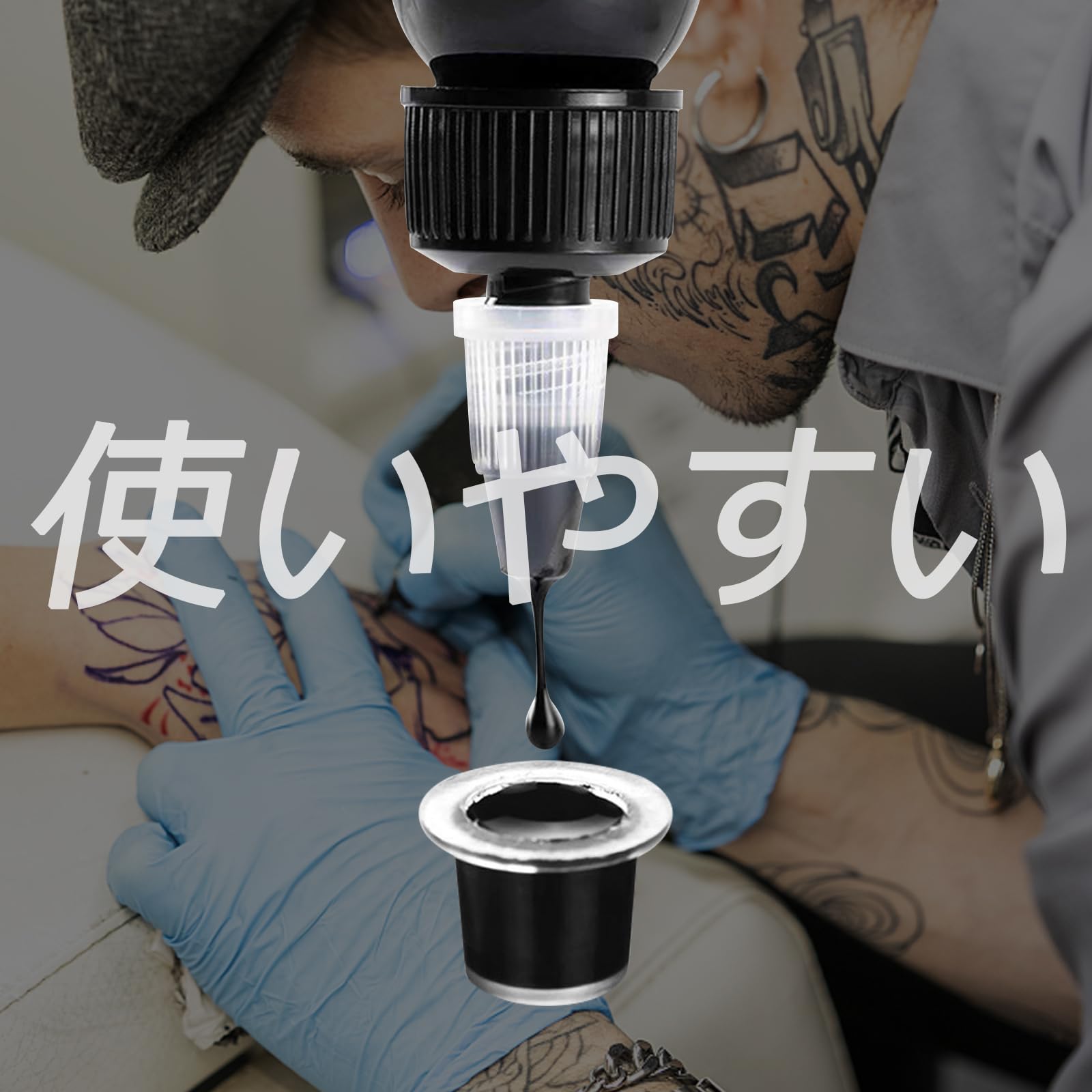 [パッケージとサイズ] - 3つのブラックタトゥーインクカップホルダーと300の混合サイズタトゥーインクキャップが付属しています。 このキットを使えば、タトゥーインクを混ぜるのも、タトゥーを彫るのも簡単になります。